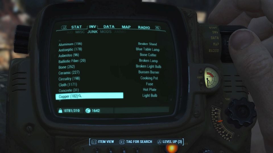 De meeste mensen weten ondertussen wel dat als je iets wil bouwen in Workshop view, en je hebt bepaalde items niet, dat je deze kunt taggen met de linkerbumper. Zo kan je die items snel zien tijdens het scavengen. Maar wist je dat je dit ook manueel kunt doen voor eender welke component? Ga naar het junkgedeelte van je inventory en druk op de linkerbumper (of C op je toetsenbord) om het component-gedeelte te openen. Hier kan je alles labelen, zodat je altijd weet wat je zeker moet oprapen.