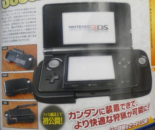 Het apparaat zal onderaan de 3DS geklikt moeten worden en maakt de handheld enkele centimeters breder. Dat komt doordat er aan de rechterkant - net naast de ABXY-knoppen - een tweede circle pad komt te staan. Hierdoor kunnen spellen als Monster Hunter genieten van een betere besturing, waarbij de tweede circle pad waarschijnlijk dienst zal doen om de camera te besturen.
