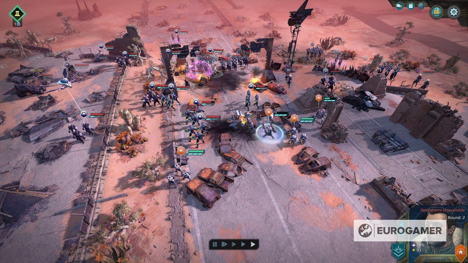 Weg zijn dus de dwergen, elven en orcs. In de plaats krijg je zes speelbare facties, gaande van de biomechanische Assembly's die zichzelf repareren met de stukken van gevallen robotbroeders tot de vrouwelijke Amazons die op de rug van een dinosaurus ten strijde trekken. Door de grote onderlinge verschillen moet je steeds nadenken over de juiste aanpak. Zo kies je met de insectachtige Kir'ko best voor een directe zwermaanval, terwijl je met de sluiperige Syndicate voor een hit-and-run-tactiek gaat. De diversiteit tussen de facties is groot genoeg, waardoor je voortdurend interessante overwegingen voorgeschoteld krijgt.