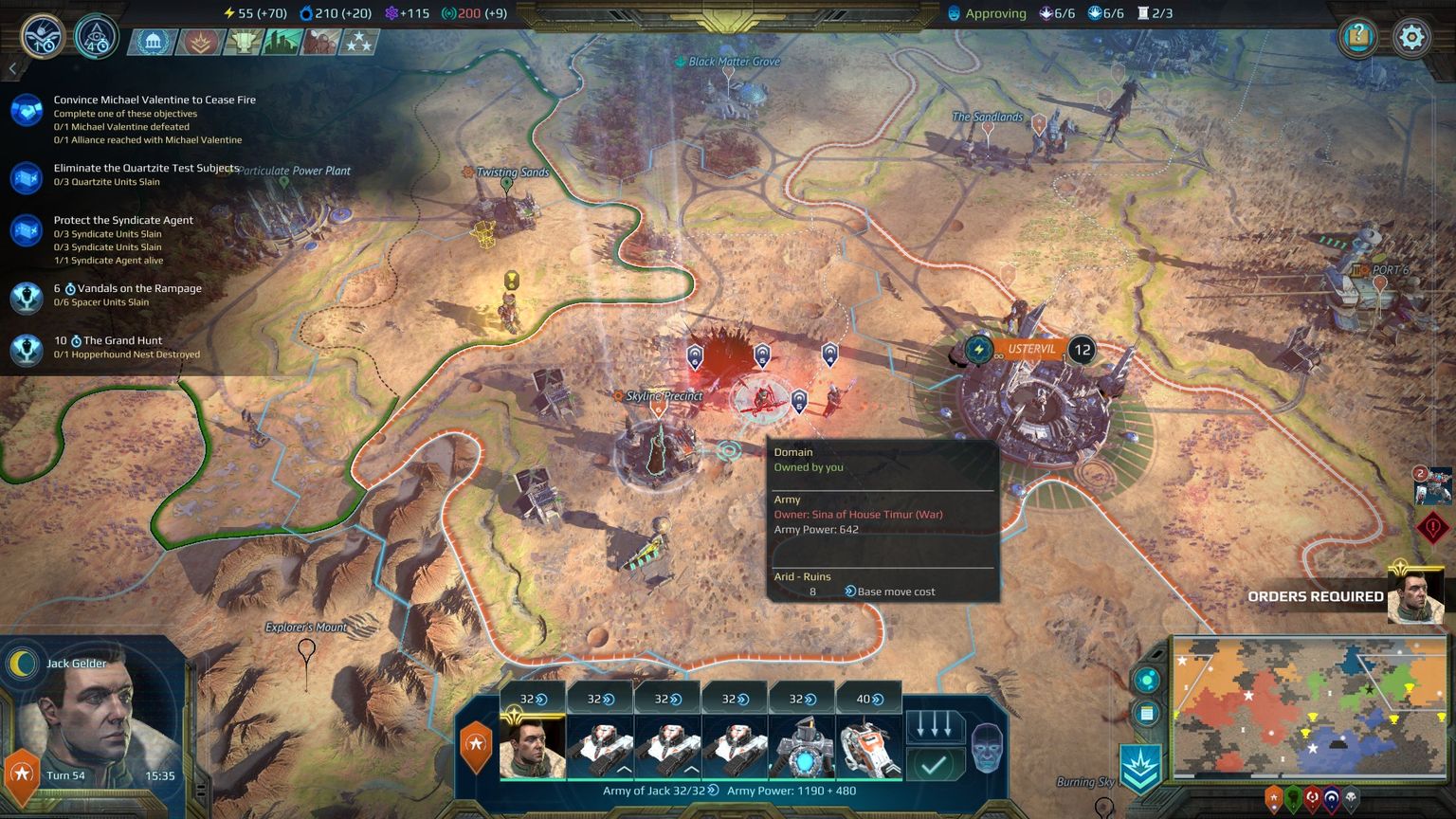 Maar om die troepenmacht op de been te krijgen, moet je natuurlijk grondstoffen verzamelen en infrastructuur bouwen op de 4X-wereldkaart. Dat 4X-luik van Planetfall is degelijk, maar weinig verrassend of vernieuwend. Je bouwt steden en hun infrastructuur, onderzoekt nieuwe technologieën en bedrijft wat oppervlakkige diplomatie. Niets nieuws onder de zon voor vertrouwelingen van het genre. Wel origineel is de manier waarop je je grenzen uitbreidt: niet vakje per vakje, maar door gehele regio's te claimen. Die snelle escalatie is natuurlijk niet toevallig, want ze leidt snel tot spanningen. En hoe meer spanning, hoe meer er gevochten wordt. Triumph Studios maakt op die manier goed gebruik van het feit dat de grootste aantrekkingskracht van Age of Wonders: Planetfall in de de turn-based-gevechten ligt.
