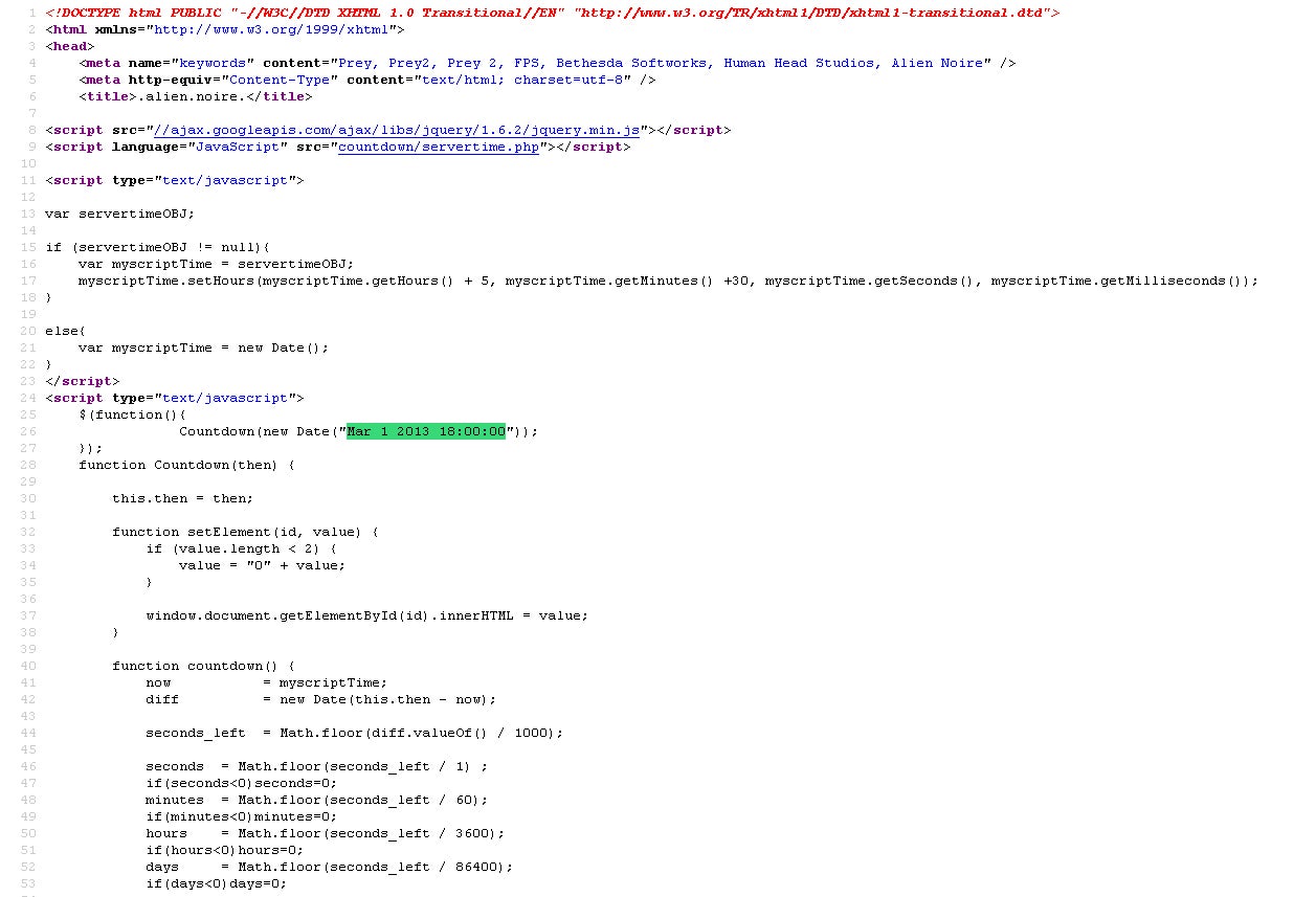 Ook het eindpunt van de aftelklok staat vermeld in de broncode van de webpagina. Op 1 maart omstreeks 18 uur krijgt de wereld te zien wat er achter de aflopende cijfers verborgen zit. Of dat nog steeds de Prey 2 zal zijn die we in 2011 op de E3 beurs te zien kregen, valt nog af te wachten.