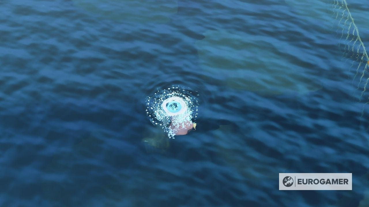 Ga naar de bubbels en begin met duiken. Terwijl je dat doet, zal de camera veranderen, waardoor je een bovenaanzicht van de zee krijgt. Zo krijg je ineens een schaduw op de zeebodem te zien.