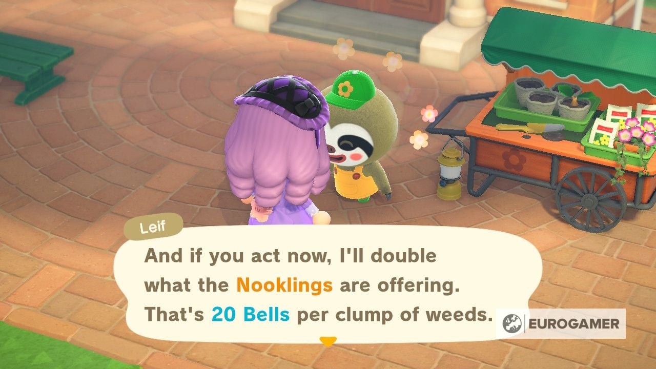 Je kan ook al het onkruid dat je hebt aan Leif verkopen voor 20 klingels per stuk. Dat is maar liefst het dubbele dat je ervoor krijgt in Nooks Hoek.