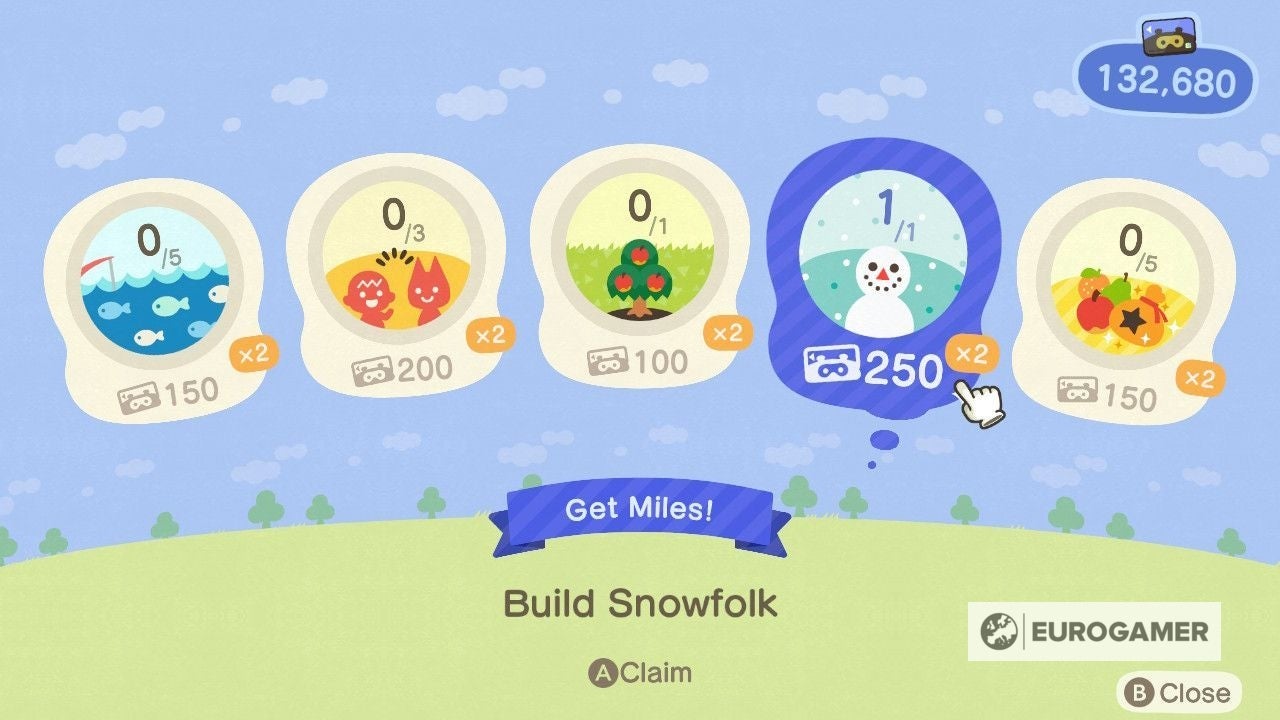 Sneeuwknullen hebben zelfs hun eigen Nook-miles achievements en een Nook-miles+ taak.