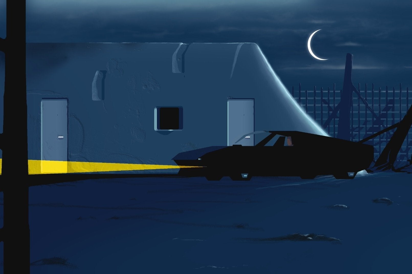 Een simpele maar prachtige horizon glinstert in de verte. De plek waar Lester zonder enige opzet op is beland, heeft wat weg van de Grand Canyon. Maar de hoeveelheid manen en sterren aan de hemel ontkrachten deze aardse associatie. De mysterieuze en rotsachtige planeet is duidelijk ver, ver weg van huis.