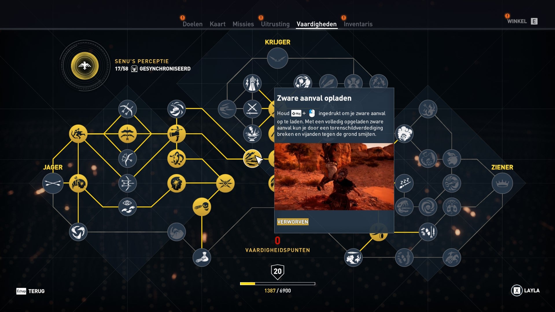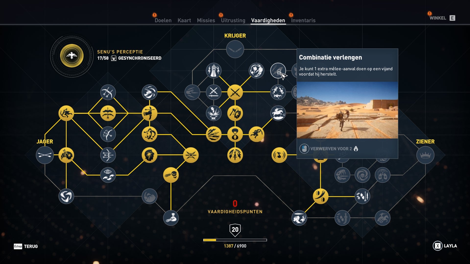 In de Ziener-categorie vind je heel wat vaardigheden die bij stealth en gevechten goed van pas komen.