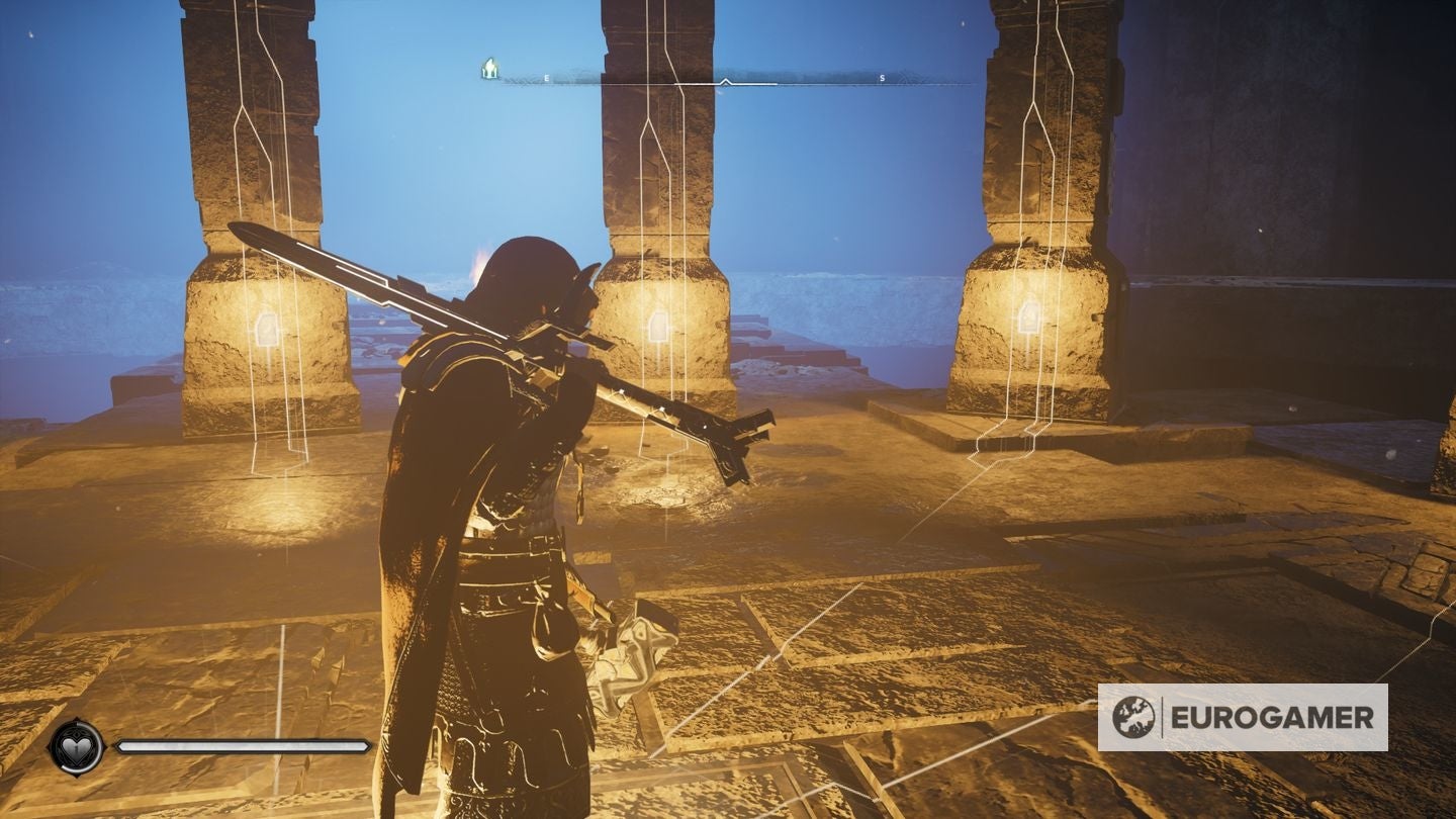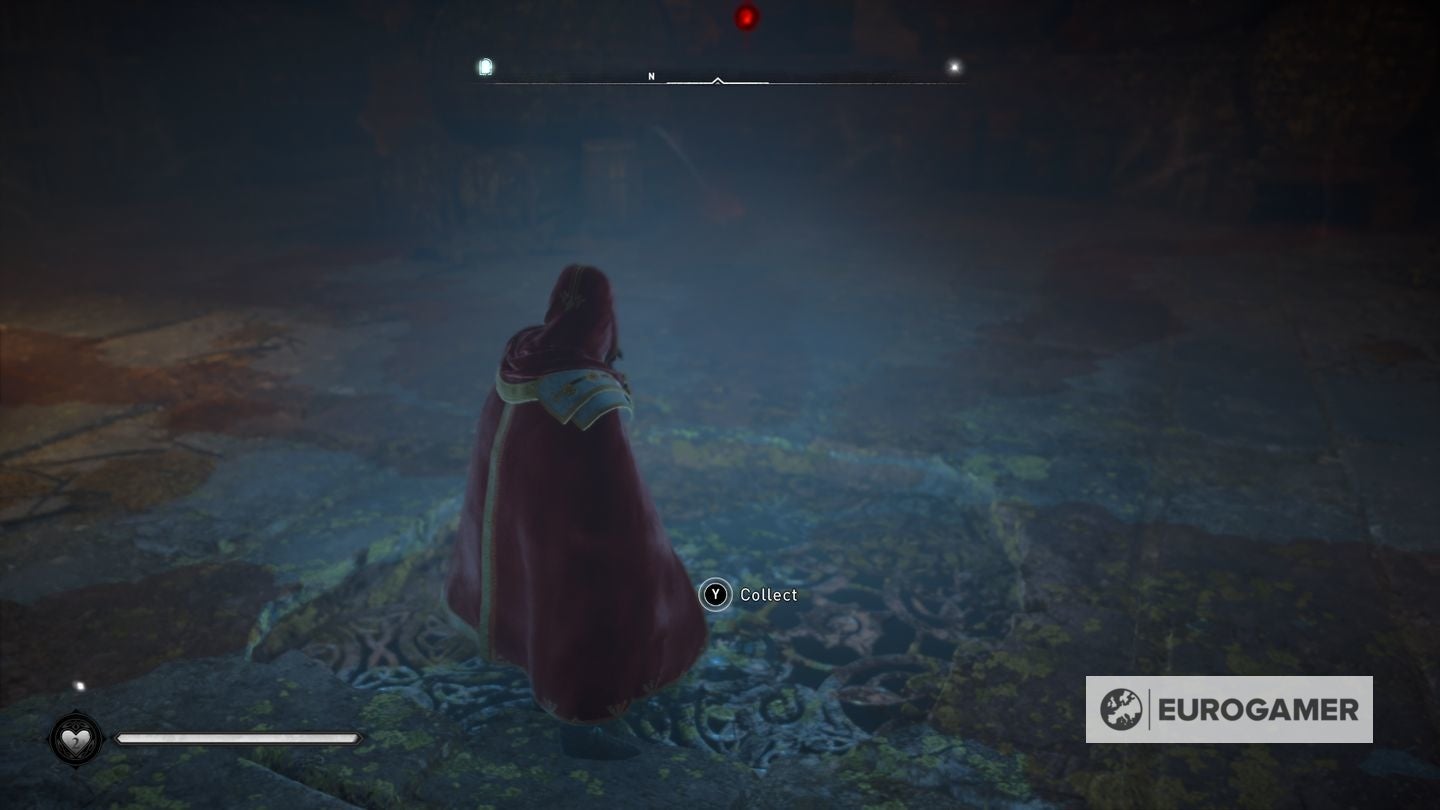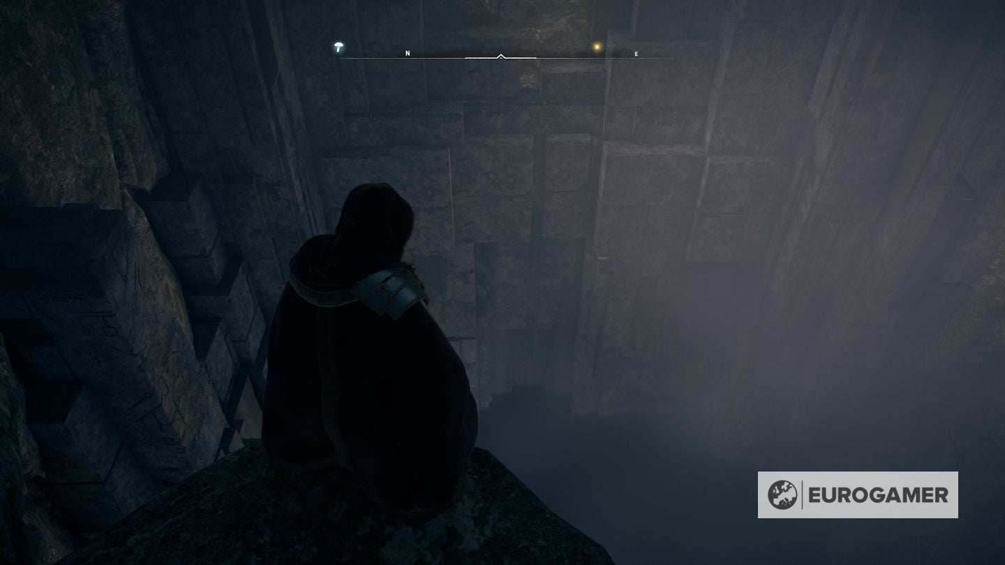 Als je eenmaal in de grot in het noordelijke deel van Snotinghamscire bent, moet je naar het bovenste platform klimmen, dat je door een spleet in de muur naar een open kamer met drie verwoeste beelden brengt.