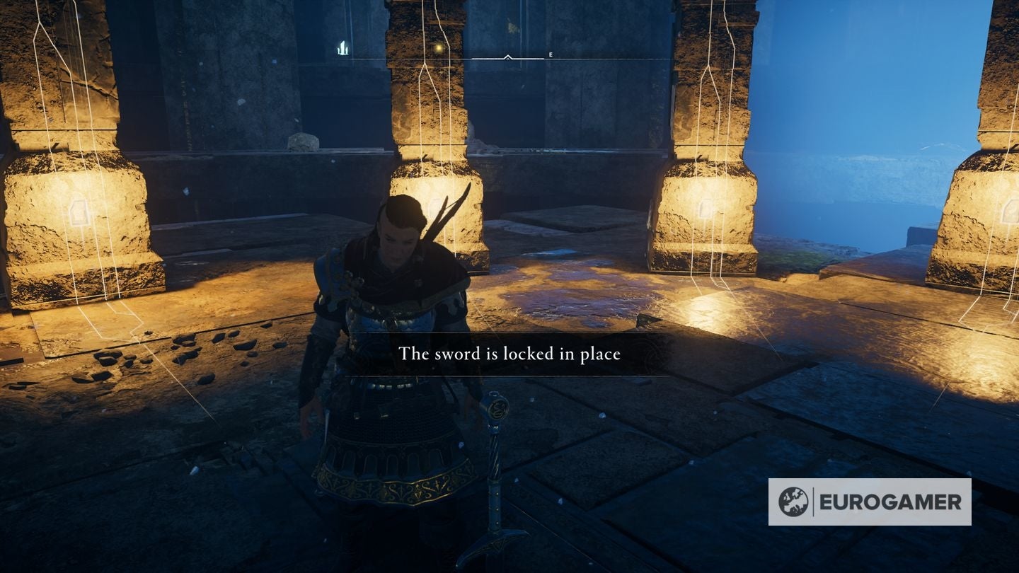 Houd er rekening mee dat je het zwaard niet kunt krijgen totdat je alle tabletten in de monolieten stopt. Dus we raden je aan om pas aan het eind richting de grot te gaan.