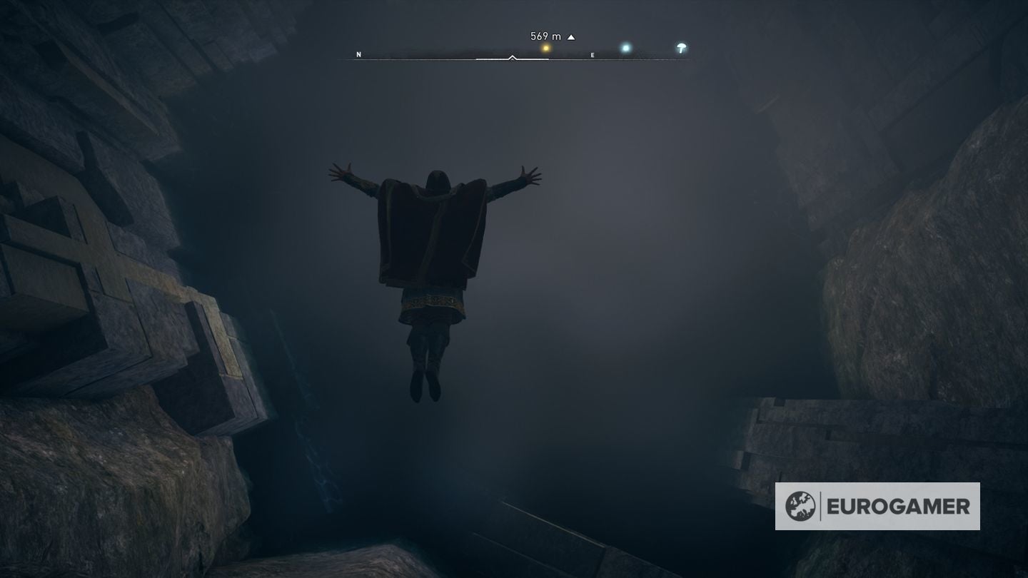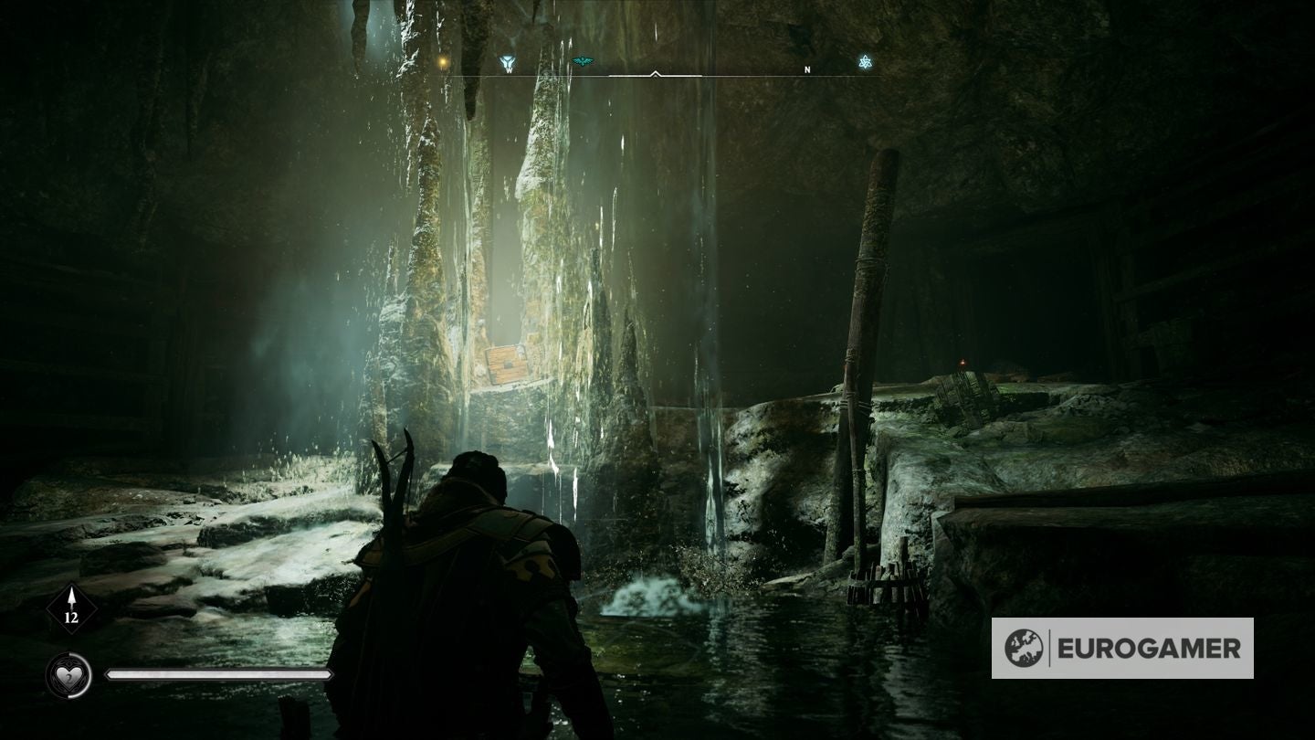 De Wicca-grot ligt ten westen van Jorvik en heeft een vrij lineair pad, maar is uiteindelijk ook makkelijk om in te verdwalen. Ga naar binnen totdat je bij een open gebied met de boom op een centraal platform komt, klim naar de boom en spring richting de muur aan je rechterkant.