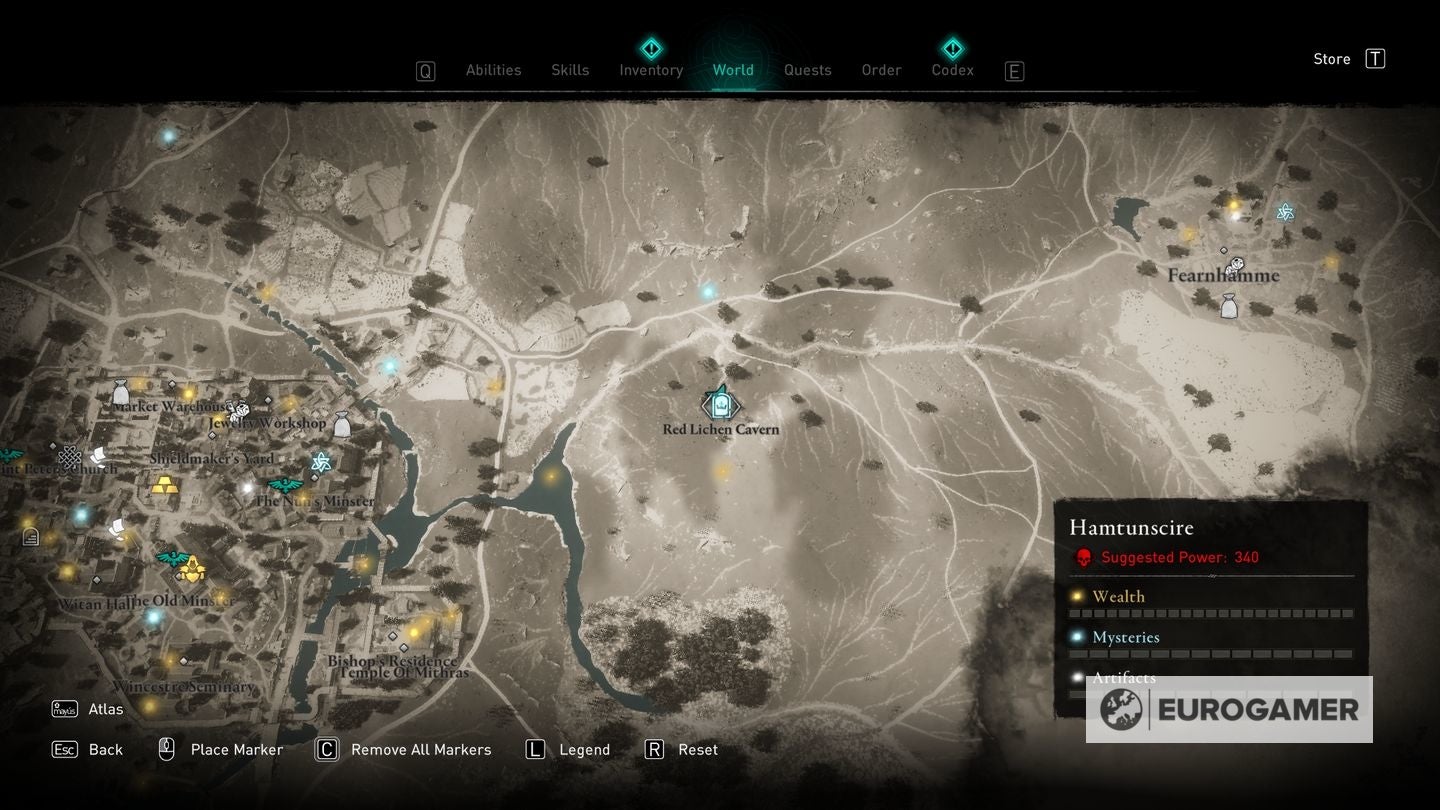 Na een korte trip naar het oosten van Wincestre kom je aan bij de Red Lichen Cavern.