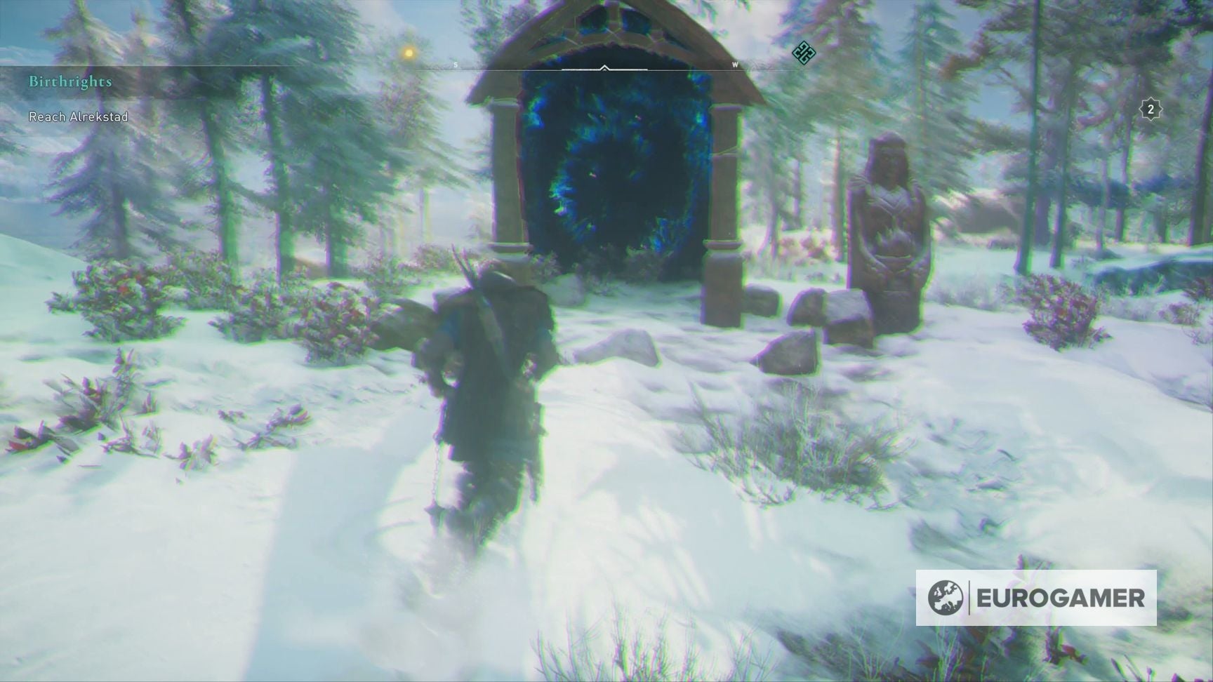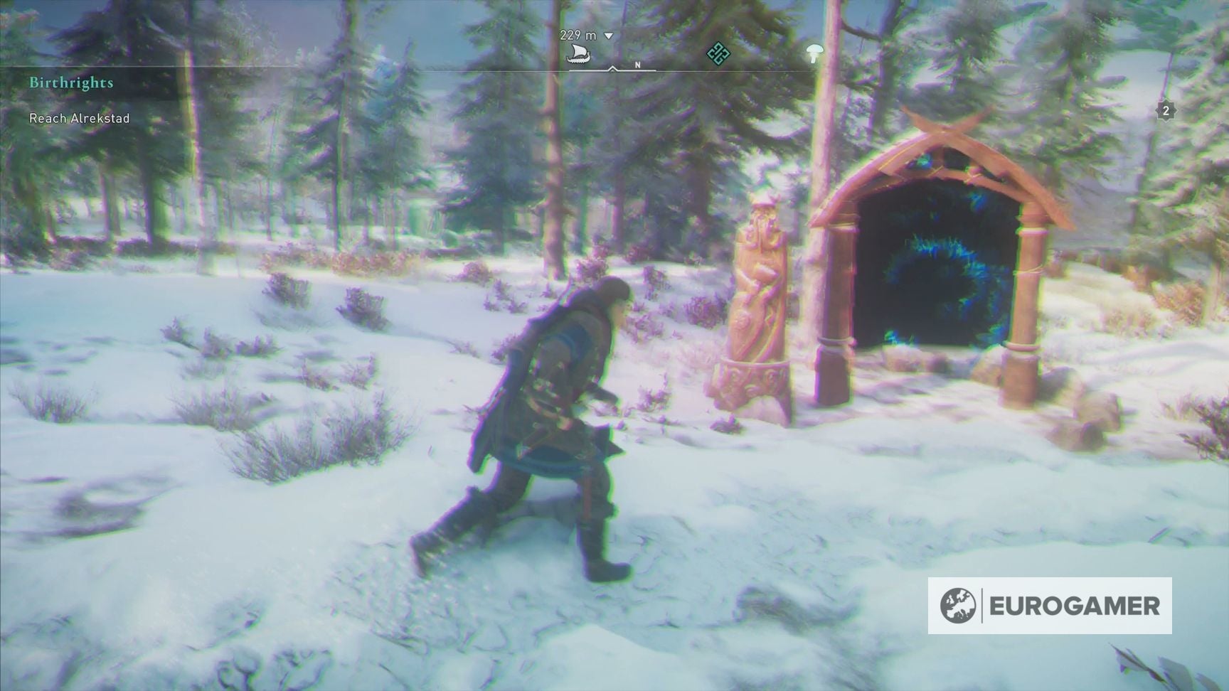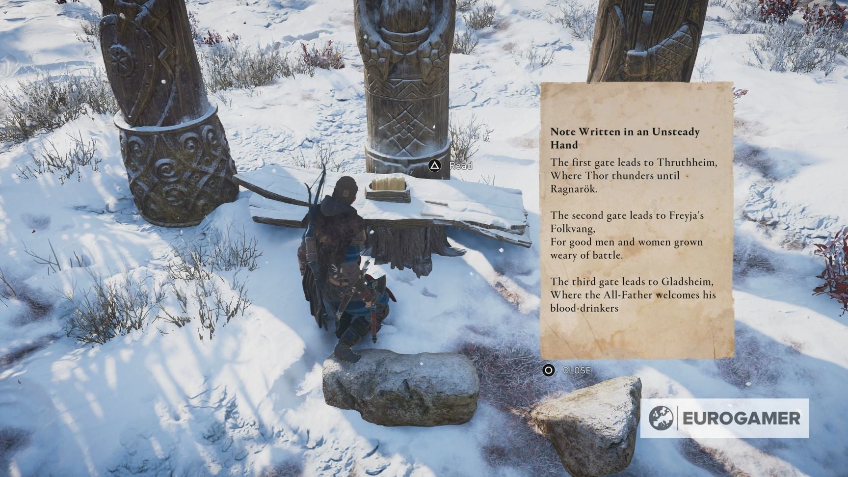Je snapt de hint misschien wel, maar het is je taak dus om de paddestoel op te eten, en vervolgens door de poorten genaamd Thor, Freyja en Odin te lopen, in die volgorde.