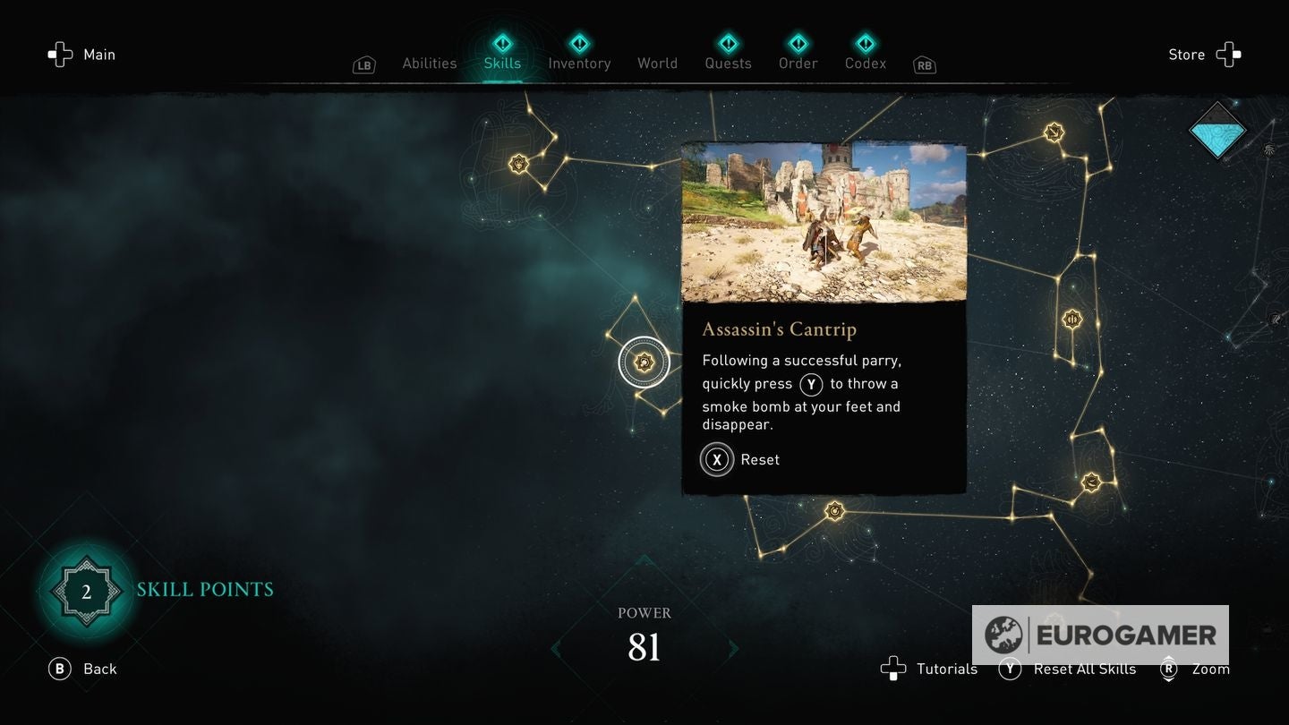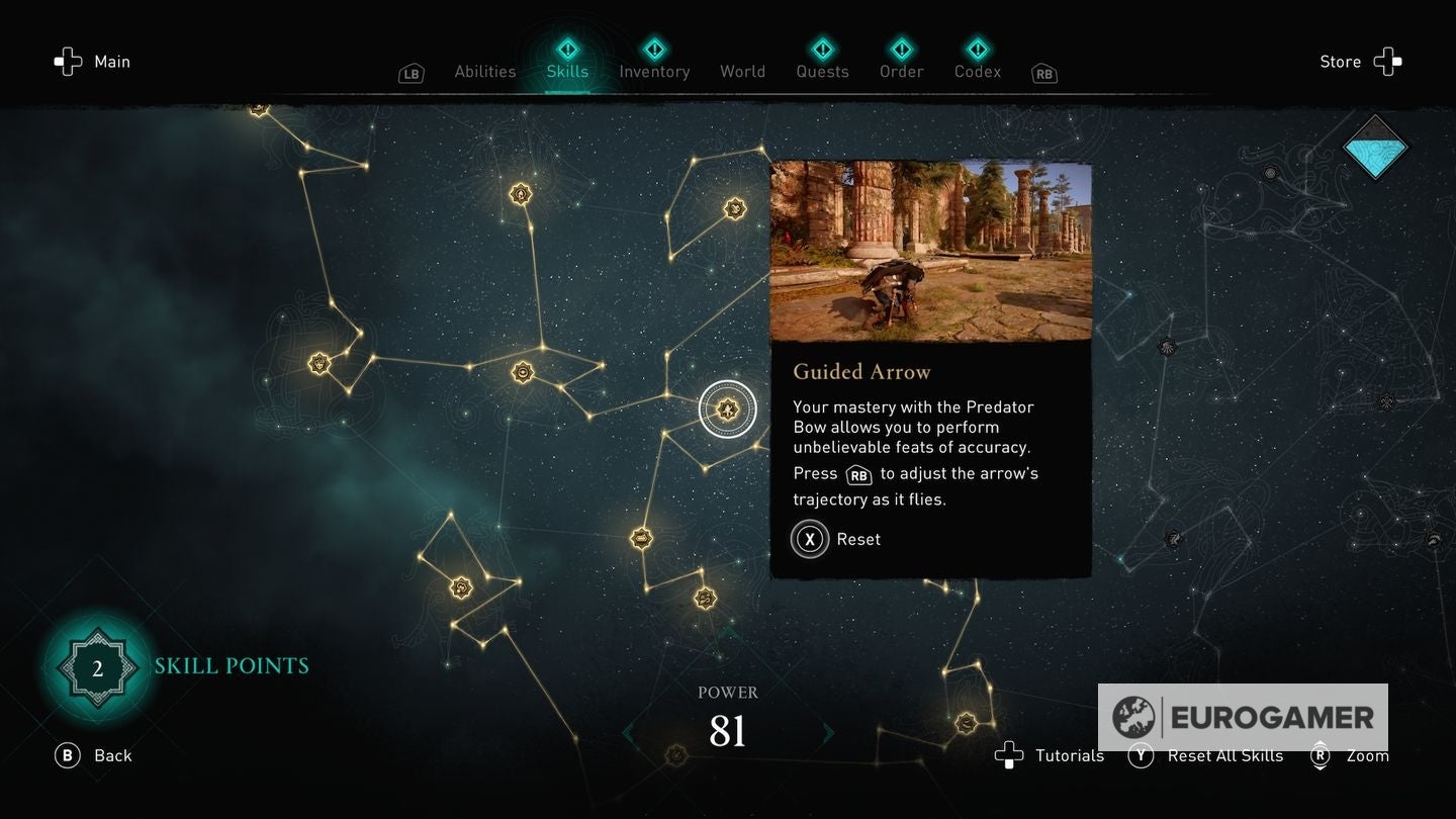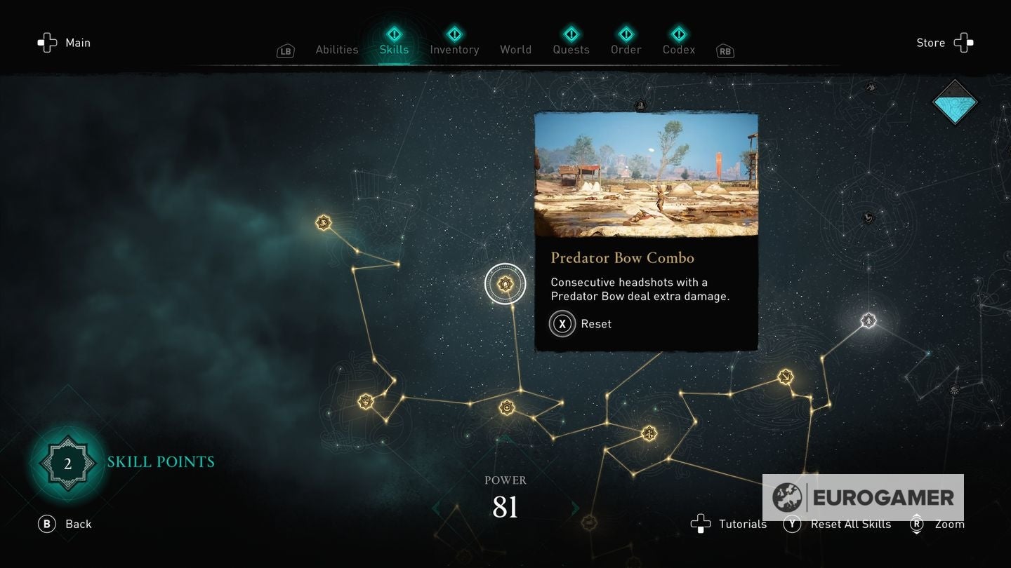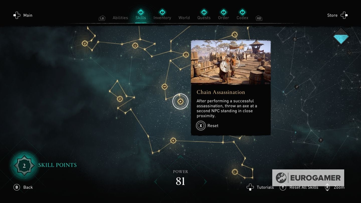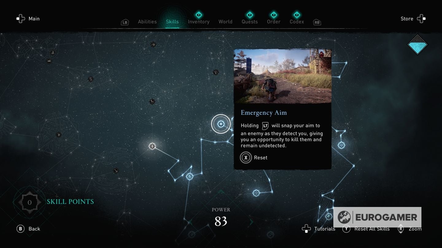 Die skill points steek je in de Skills Tree en de verschillende gevulde sections van de Skills Tree - verkrijgbaar in het main menu - worden weergegeven via Eivors Power Level. Elke Raid, Order Member en Region krijgen een voorgesteld Power Level en daarom is het om problemen vragen als je er rondloopt met een te laag level.