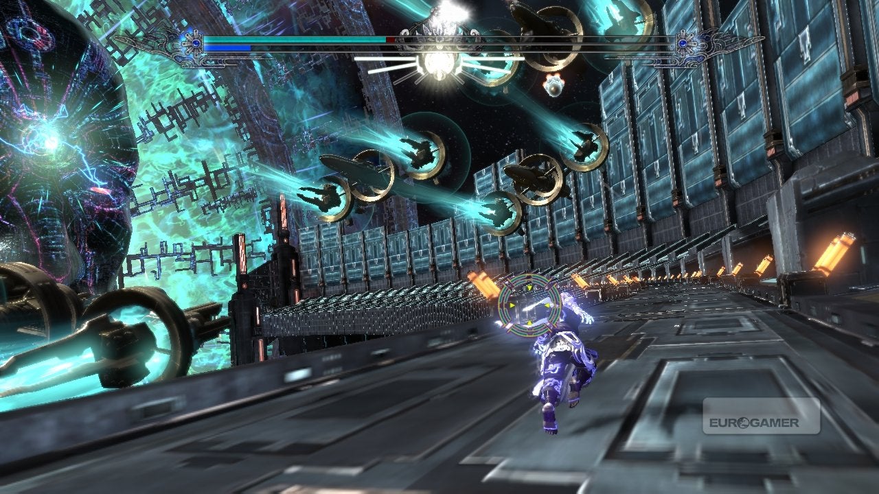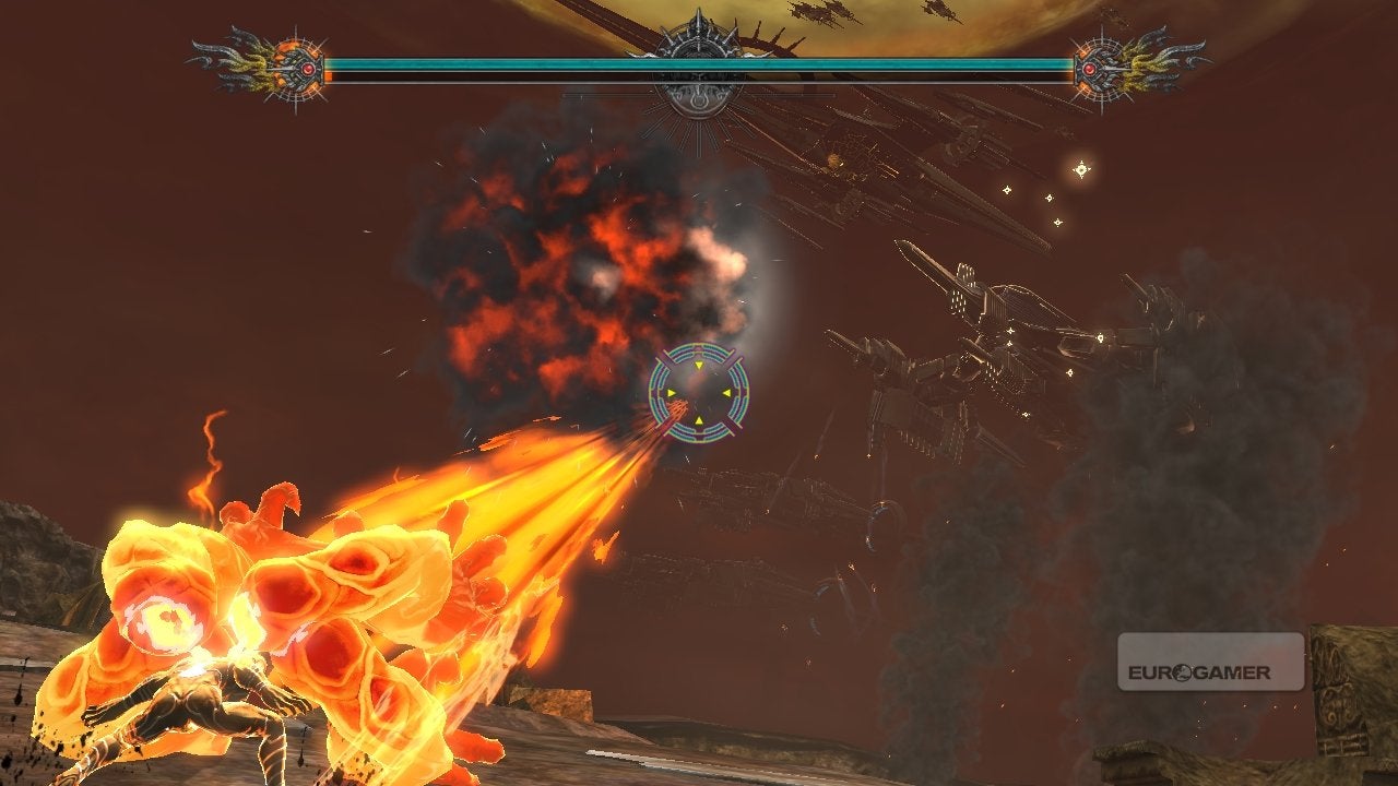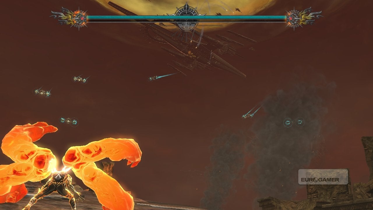 En dan zijn er nog de shootergedeeltes. Soms vlieg je in de lucht en schiet je ruimteschepen en vliegende monsters tot pulp, op andere momenten ren je vliegensvlug van punt a naar punt b terwijl je obstakels aan gort knalt. De game switcht tussen filmpjes, gevechten, schiet- en renstukken alsof het een lieve lust is en er mag dus best gezegd worden dat het spel heel wat variatie bevat. Je mag je onder andere nog verwachten aan een equivalent van de naakte vrouwenscènes uit de God of War reeks en er wordt halverwege het spel plots van hoofdpersonage veranderd. De credits rollen dan ook over je scherm voor je het weet, na zes à zeven uur mag je de controller opbergen.