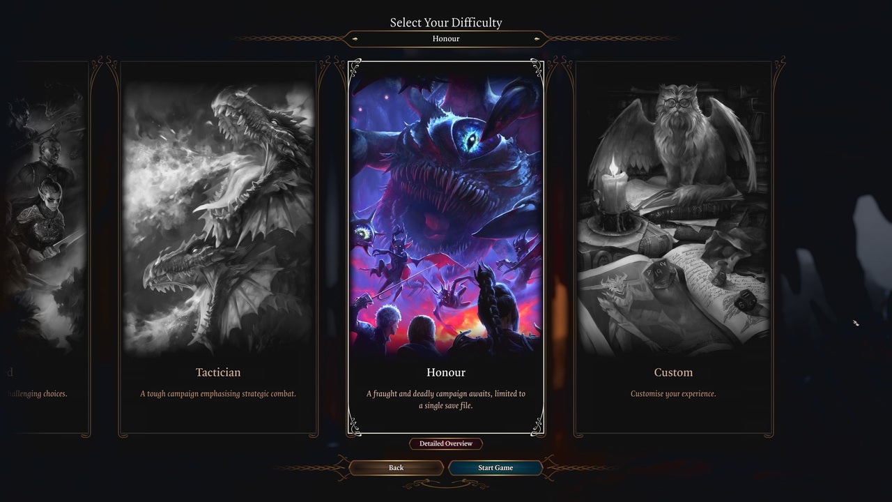 Spelers kunnen hun voortgang ook niet opslaan in Honour Mode. Wie sterft, krijgt statistieken van diens reis te zien. Vervolgens kun je wel verdergaan met de game in een andere moeilijkheidsgraad. Wie de modus succesvol weet te voltooien, krijgt The Golden D20-dobbelsteen als beloning.