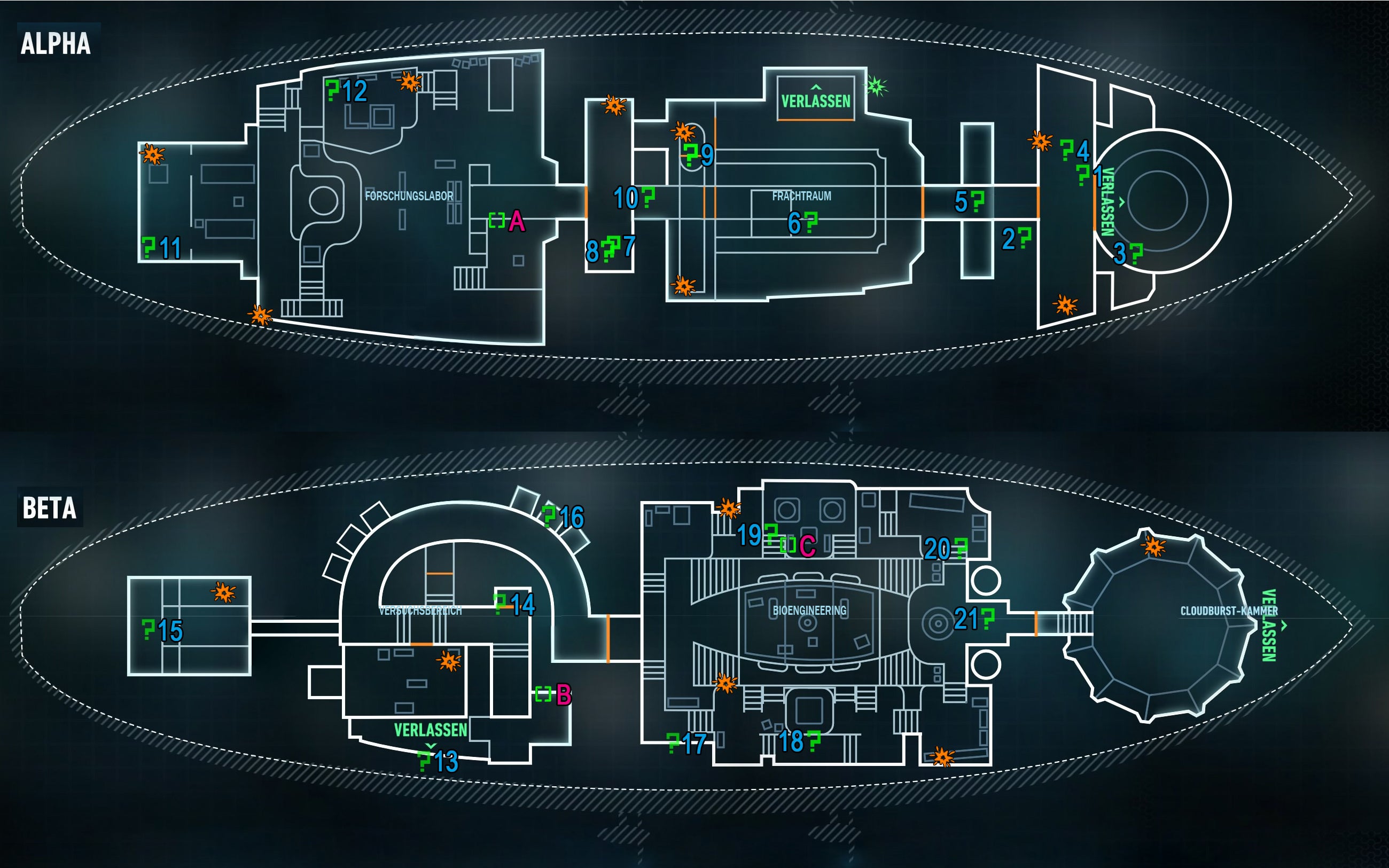 15. Maak alle magneetkisten los met de Remote Hacking Device en kantel het schip naar links. Nu kun je aan de rechterkant onder de kisten passeren. Hier kantel je het schip in de andere richting en zet je de laatste kist met magneetslot vast, wanneer ze het tweede luik gepasseerd is. Dan kantel je het schip nogmaals in de andere richting en kruip je door het luik in de vloer naar de trophy.