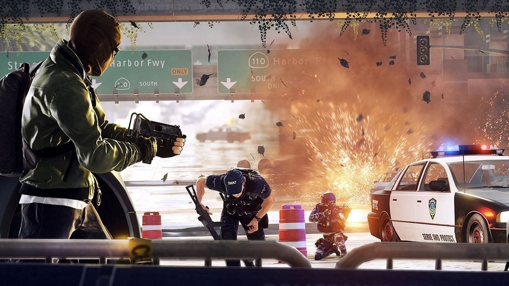 In een oorlogssituatie had ik de bovenstaande heren zonder genade in twee lijkzakken naar huis gestuurd. In de nieuwe 'agenten en boeven'-setting van Battlefield Hardline verdien je echter extra punten wanneer je criminelen op een niet-dodelijke manier uitschakelt. Sla ze in de boeien, mep ze neer of trek je taser. Het nodige sluip- en speurwerk hoort eveneens bij het takenpakket. Zoals het een echte agent betaamt dus, hoewel schieten uiteraard ook toegelaten is. De nieuwe setting zorgt direct voor nieuw elan in de over het algemeen oppervlakkige singleplayermodus van de game.