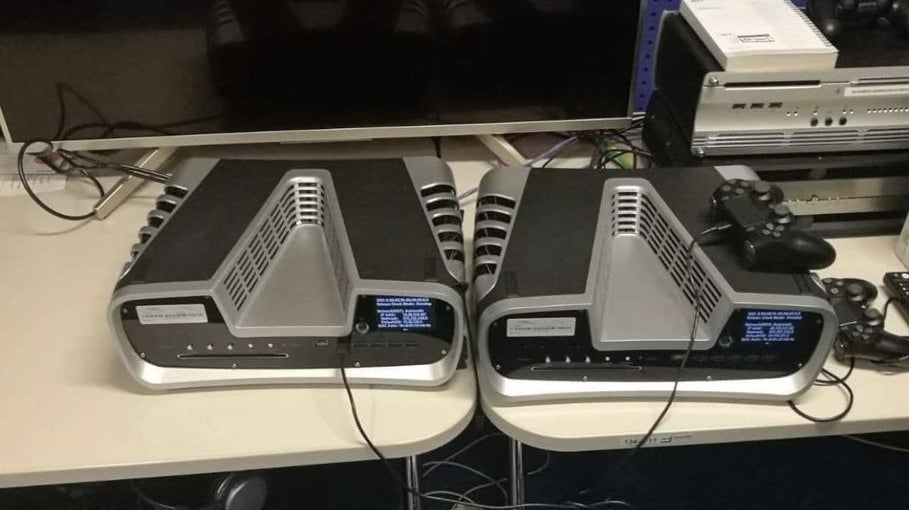 Via Twitter zijn beelden verspreid van de PlayStation 5 dev kit. Dat is de versie van de console die naar ontwikkelaars is verstuurd om de hardware te testen. Twitteraar The Drunk Cat heeft een foto verspreid van twee dergelijke consoles. Tom Warren van The Verge heeft de authenticiteit intussen bevestigd.