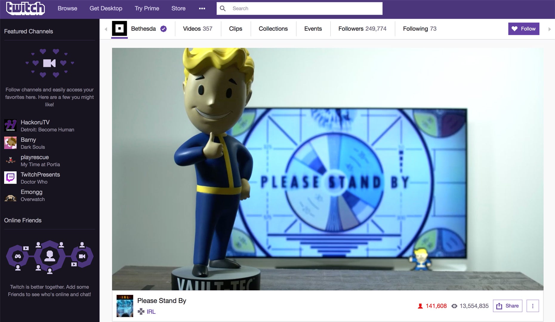 Wanneer je naar het kanaal van Bethesda gaat, krijg je een televisie te zien met daarop de woorden "Please Stand By". Op de voorgrond staat een goedkeurende Vault Boy bobble head.