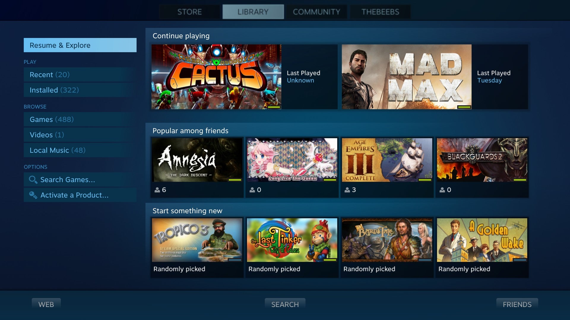 Met Steams Big Picture-modus browse je gemakkelijker door je games op je televisie. De update voegt verschillende opties toe, waaronder een lijst games die je recentelijk hebt gespeeld, en een selectie aanbevolen games.