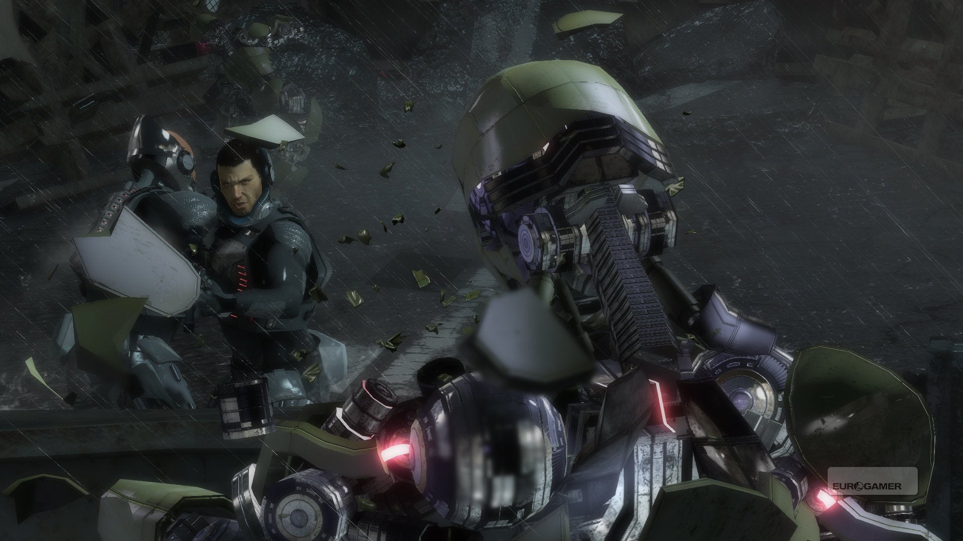 Wat je echter vooral tegen het lijf zal lopen zijn vijandige robots met modern wapentuig, die voor maar één opdracht geprogrammeerd zijn: indringers zoals jou vernietigen zonder genade. Gelukkig zijn er diverse manieren om een vijand uit te schakelen. Schiet zijn hoofd eraf en de robot holt wat in het wilde weg, waardoor zelfs zijn metalen broers niet veilig zijn. Maal je de benen onder hun lijf vandaan, pas dan maar op want een kruipende robot is nog steeds een gevaarlijke robot.