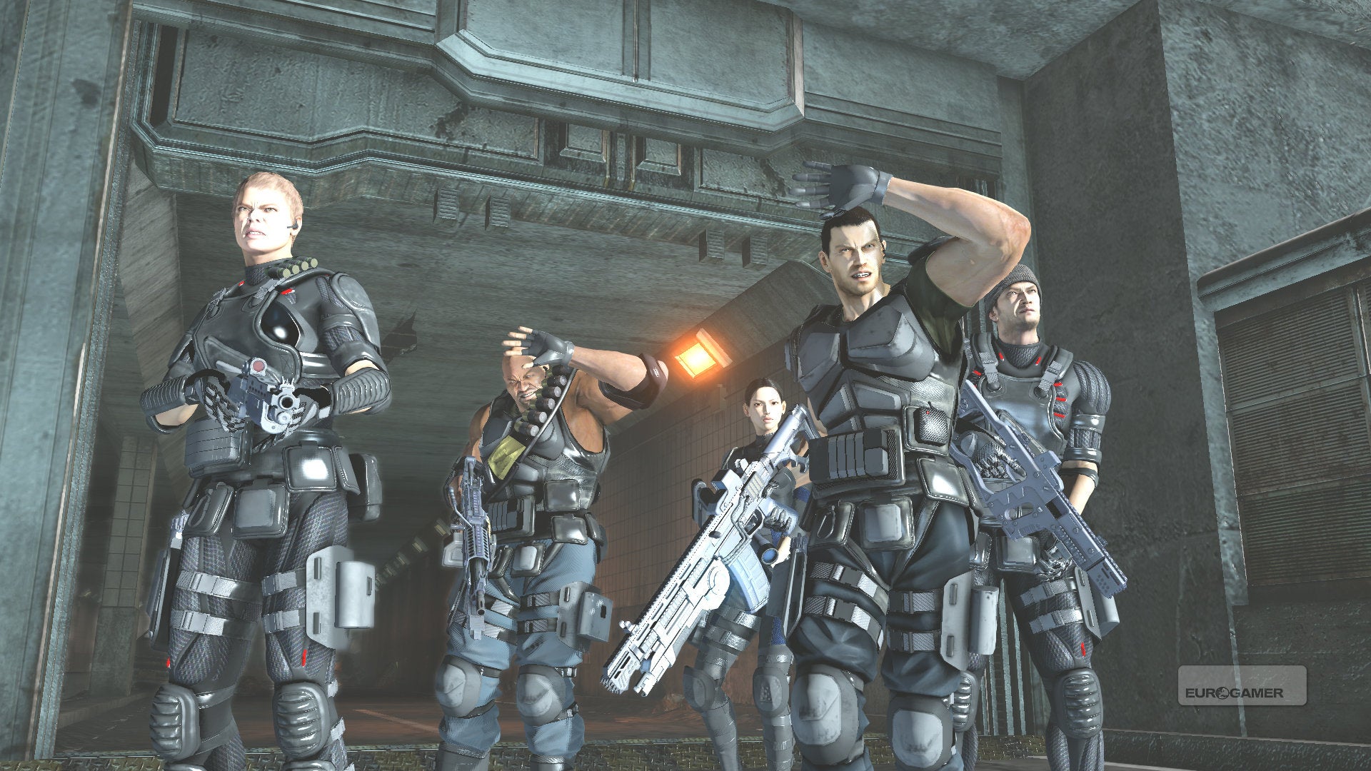Bij elke missie beschik je over drie teamgenoten, die jou moeten helpen met alles aan gort te schieten. Deze luisteren naar jou bevelen die je geeft via een druk op de knop of via spraakherkenning. Bij de getoonde hands-off demo haperde die spraakherkenning wel eens, maar er is nog tijd genoeg om dit euvel te verhelpen. In principe is het echter mogelijk om jou team of een individu een bevel te geven via een headset.