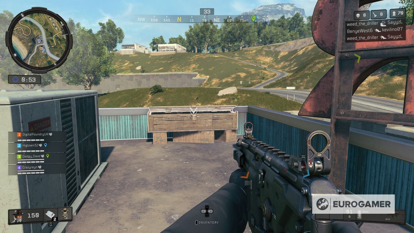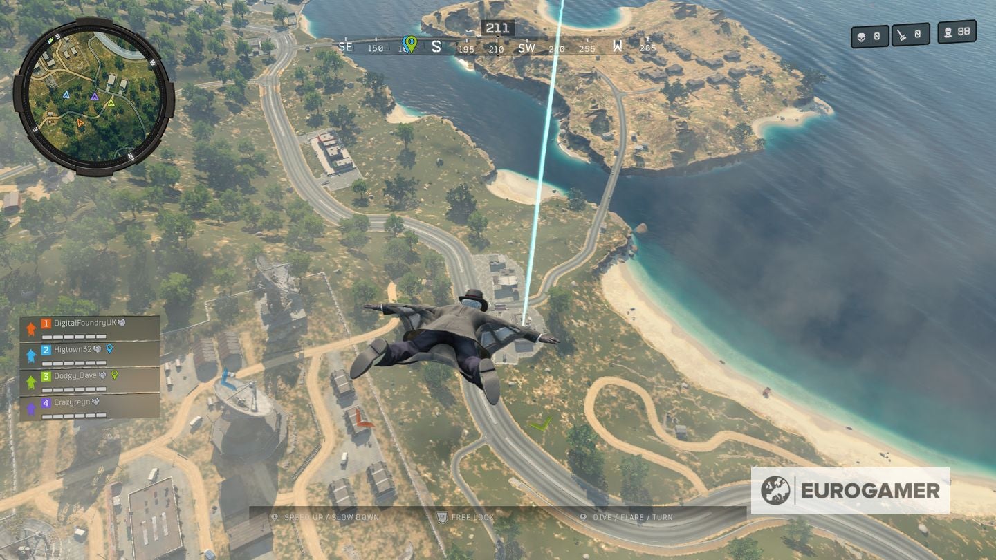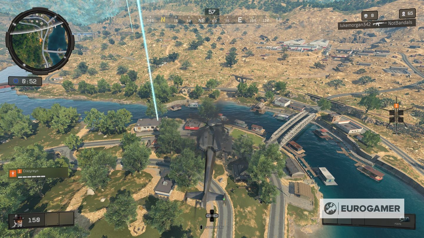- Mystery Box locaties worden ongeveer een minuut na de start van de match toegevoegd. Als je dus als eerste wil arriveren, dan heb je twee opties. Ofwel probeer je te voorspellen waar er eentje tevoorschijn zal komen aan de hand van bovenstaande kaart, of door je afdaling zo traag mogelijk te maken. In tegenstelling tot Fortnite waar je praktisch de gehele kaart kunt overbruggen als je vroeg je parachute opent, val je in Blackout vrij snel uit je helikopter. Je kan echter wat tegensturen en zoveel mogelijk gliden om je afdaling te vertragen.