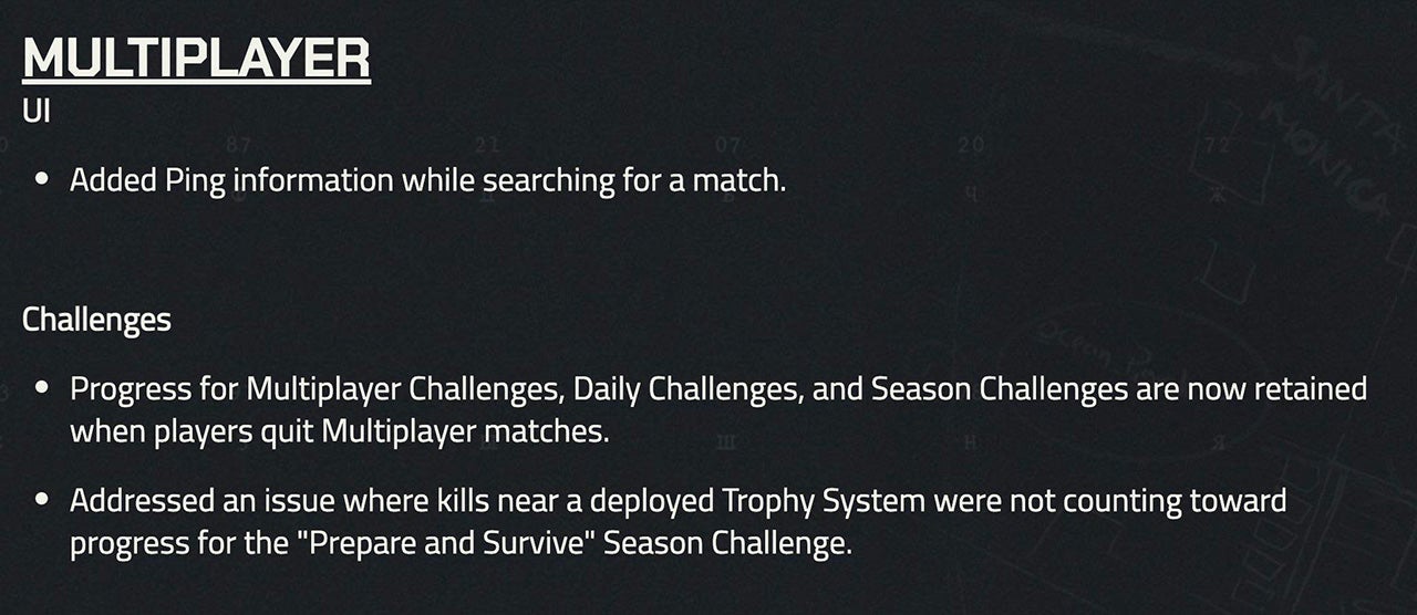 Afgelopen nacht rolde Treyarch een patch uit die stabiliteitsproblemen en bugs aanpakt. Daarnaast kregen spelers ook de mogelijkheid om challenges te voltooien wanneer ze een match verlaten die nog bezig is.