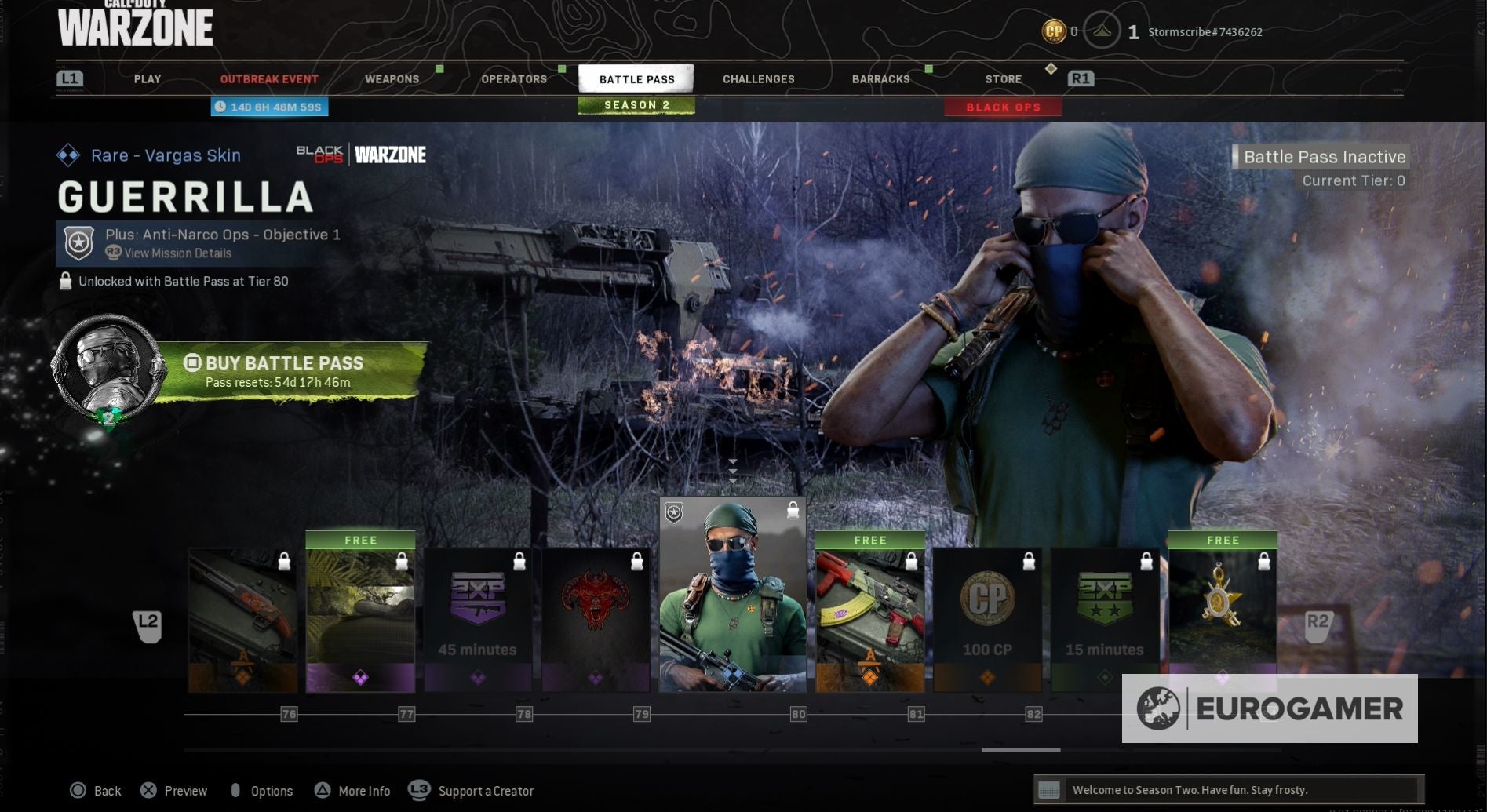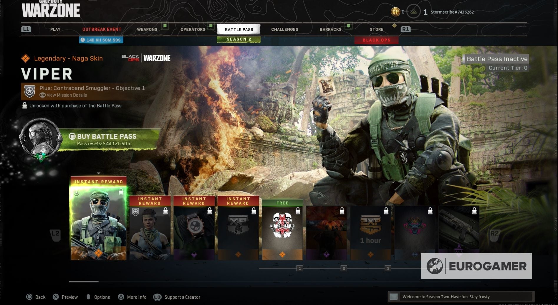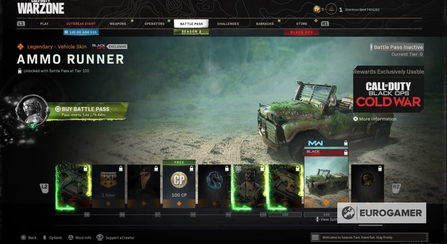 Black Ops - Cold War: Warzone Season 2 Battle Pass skins en Operators, waaronder Naga, Park en Tier 100 beloningen