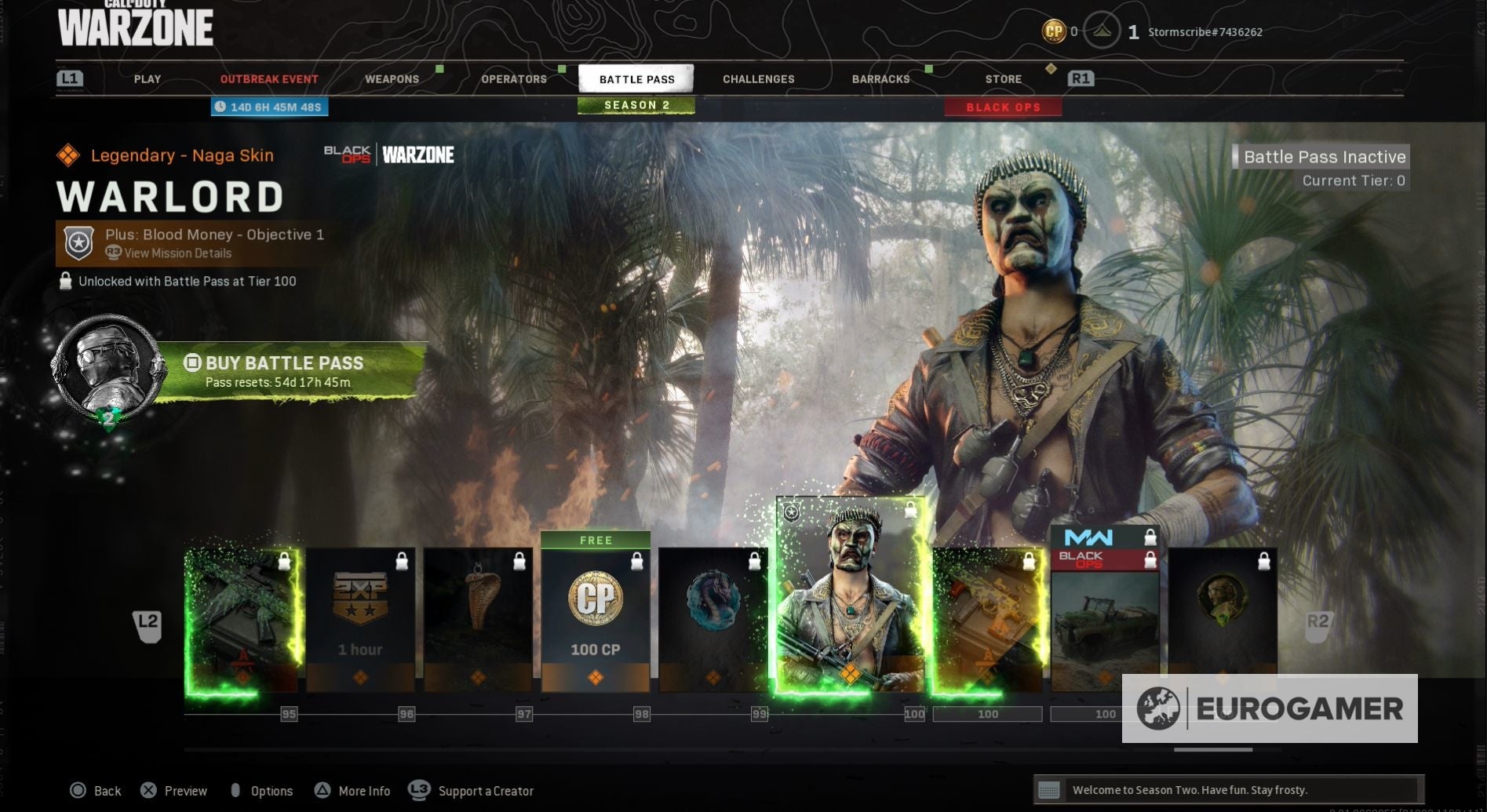 Season 2 wordt aangevoerd door Kapano “Naga” Vang, wiens Warlord skin je vrijspeelt als je Tier 100 bereikt. Je speelt ook nieuwe weapon blueprints, COD points en andere bonussen vrij, naast de Operator skins, naarmate je hoger in de Battle Pass van Season 2 klimt.