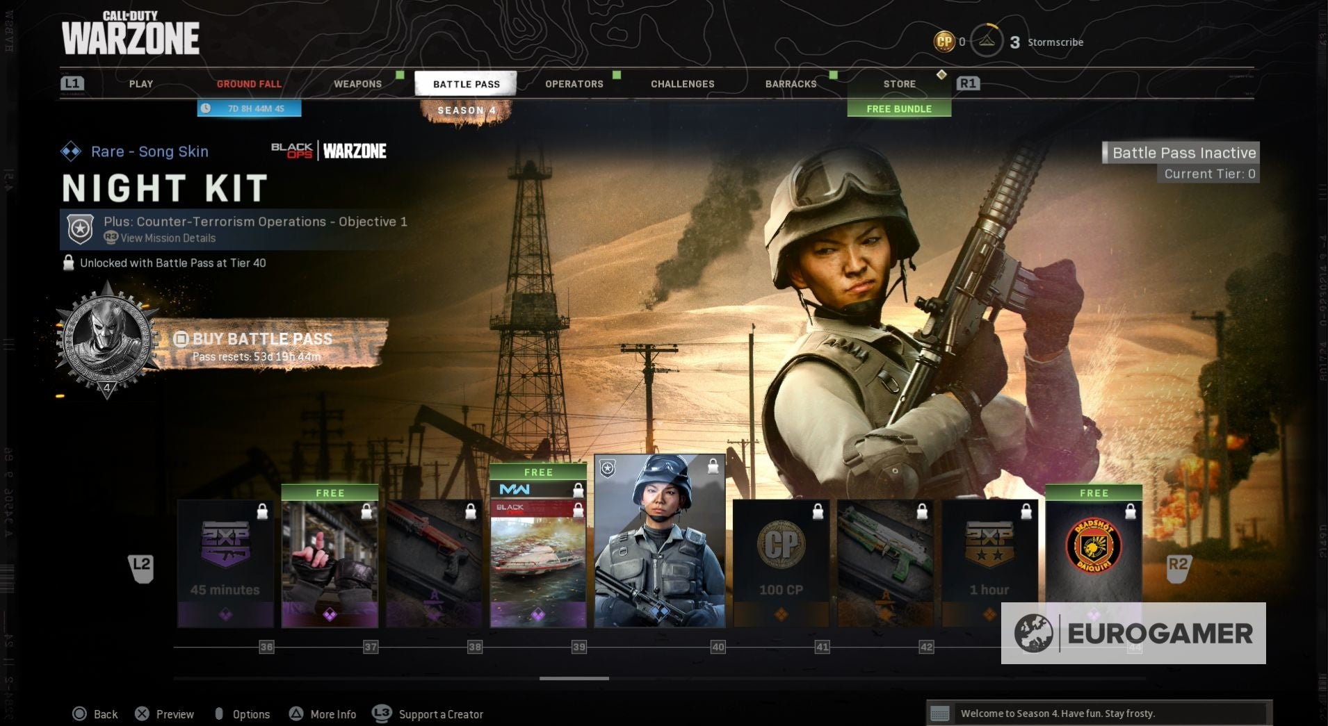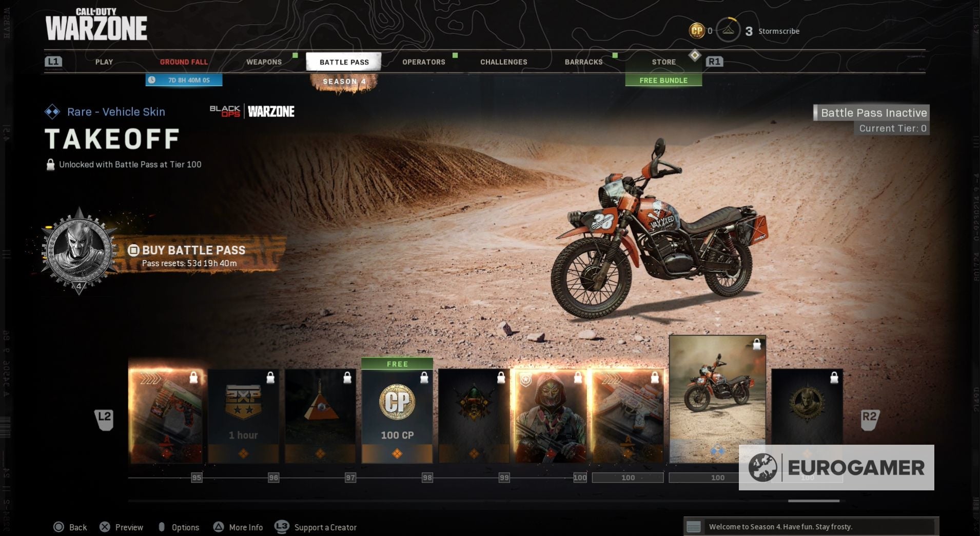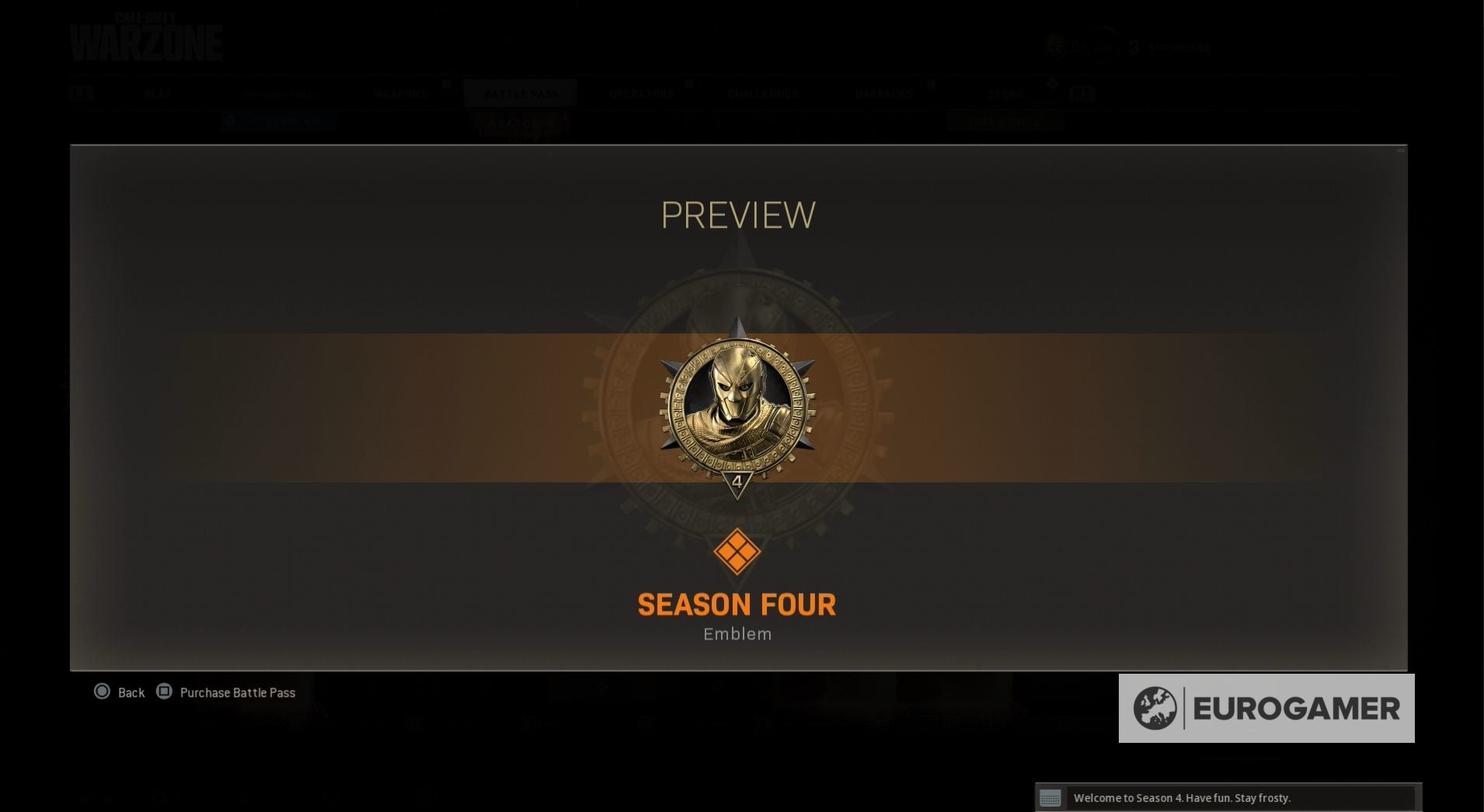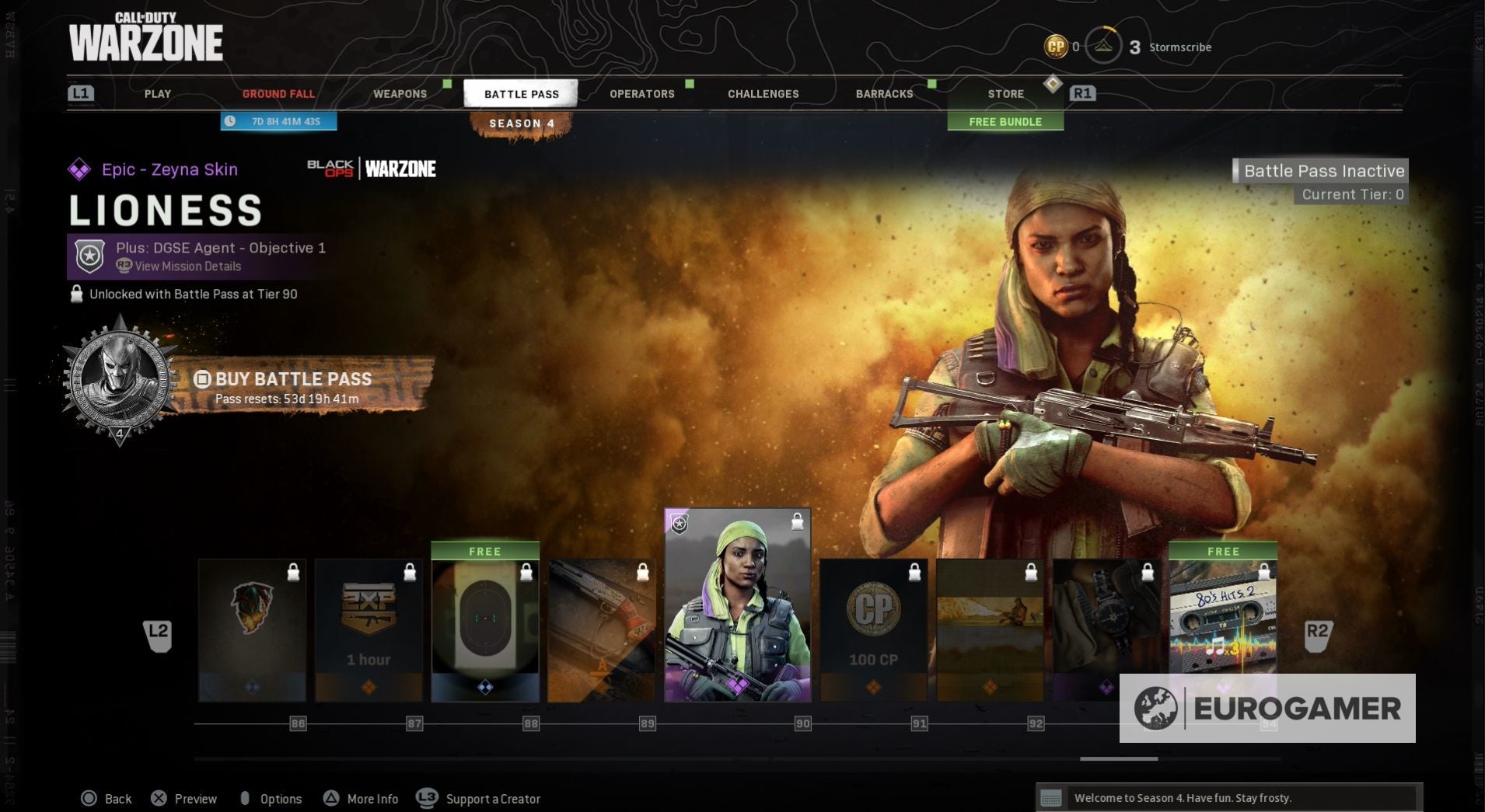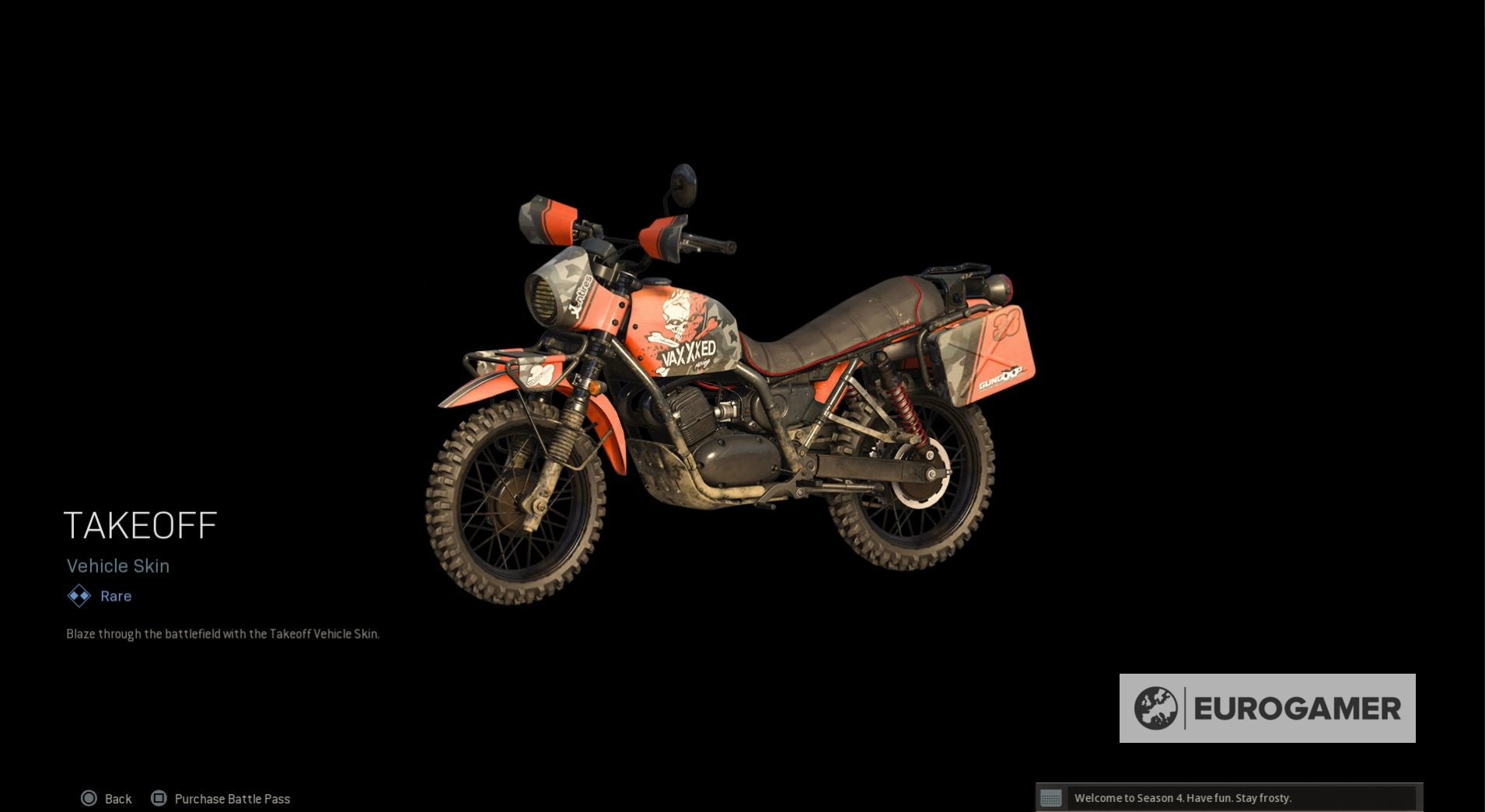 Seizoen 4 begint met een nieuwe skin voor zowel Jackal als Portnova - War Paint en Assassin. Wanneer je de Battle Pass tiers beklimt, kun je ook nieuwe weapon blueprints vrijspelen, COD-punten en, op Tier 100, de Iridescent skin voor Jackal.