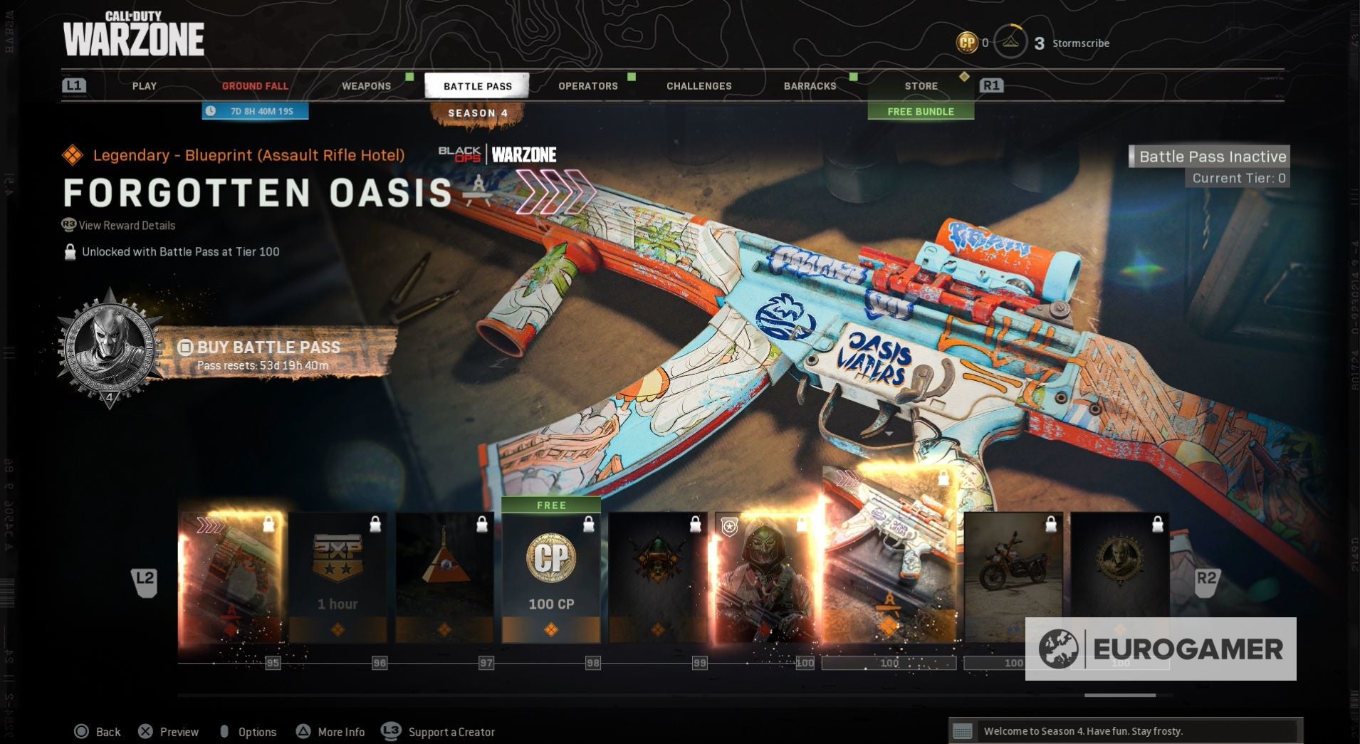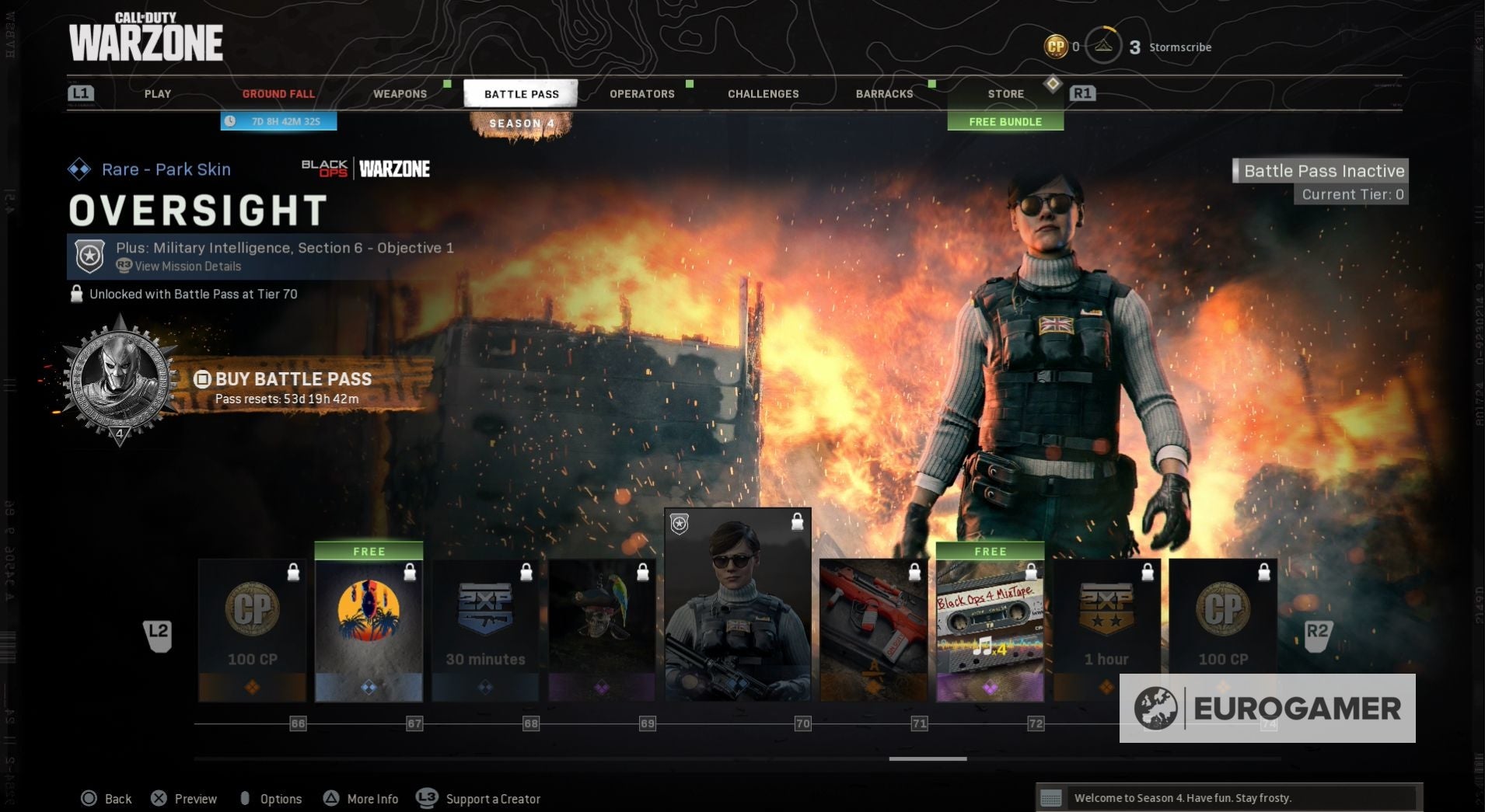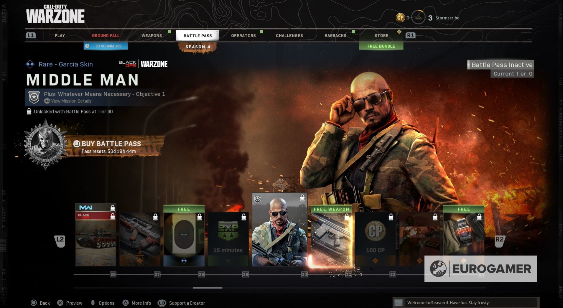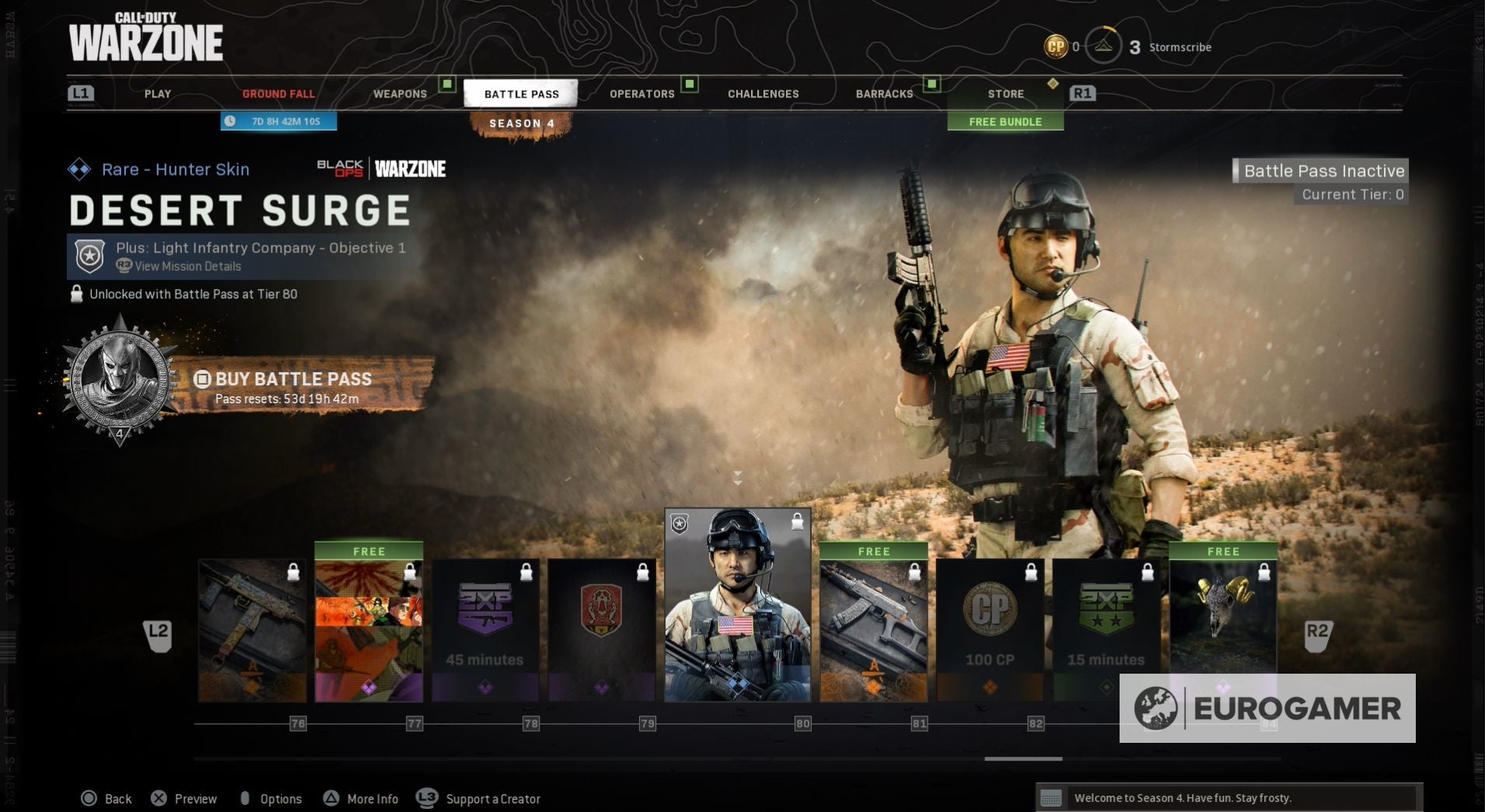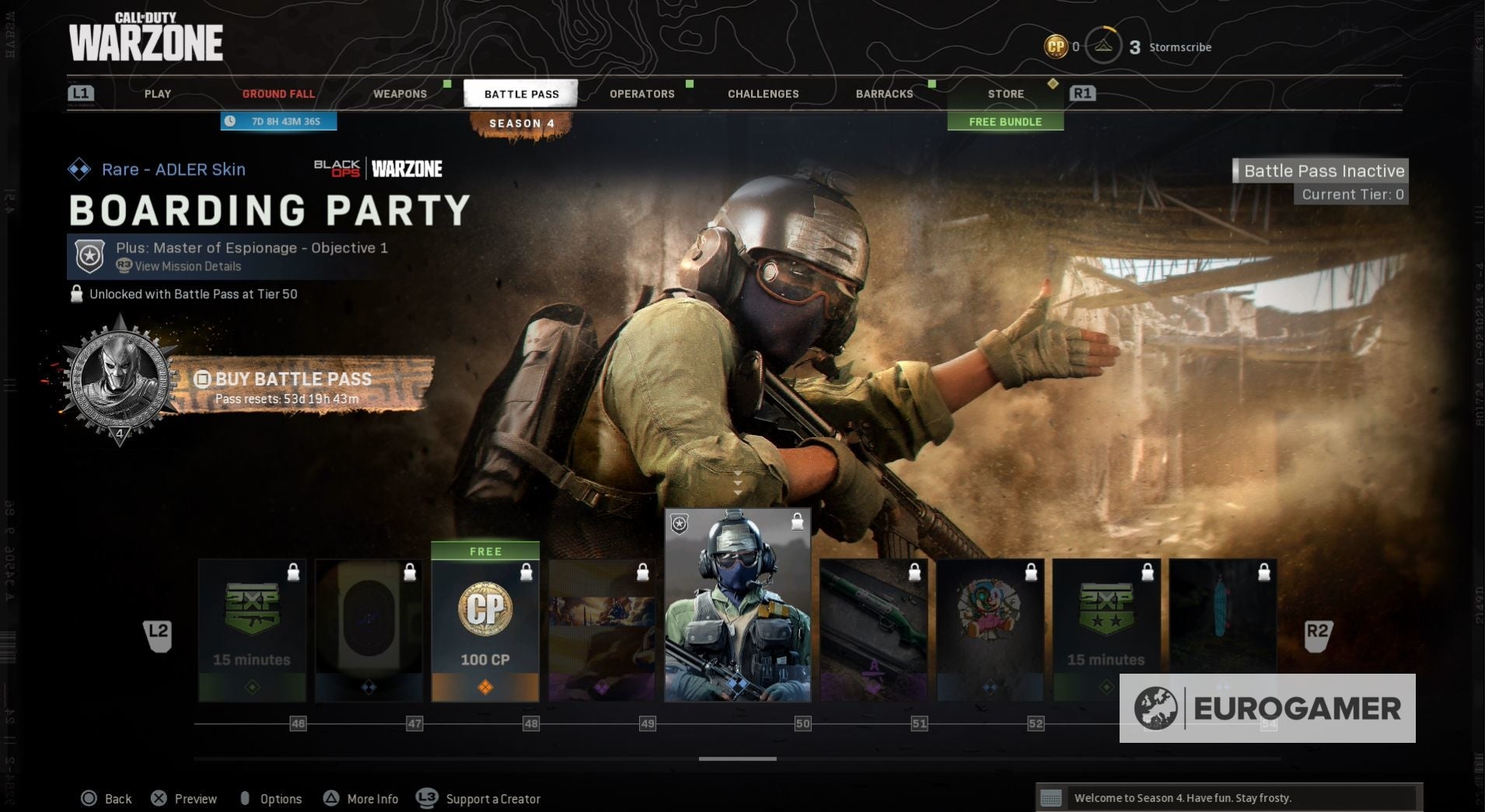 Seizoen 4 begint met een nieuwe skin voor zowel Jackal als Portnova - War Paint en Assassin. Wanneer je de Battle Pass tiers beklimt, kun je ook nieuwe weapon blueprints vrijspelen, COD-punten en, op Tier 100, de Iridescent skin voor Jackal.