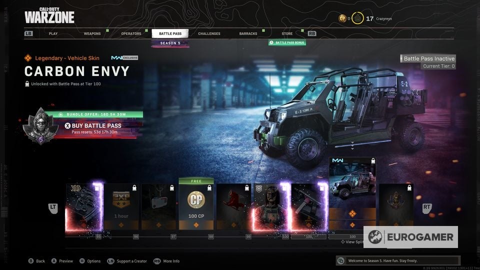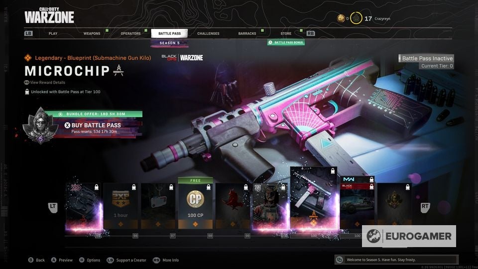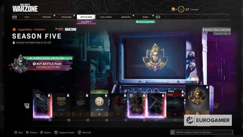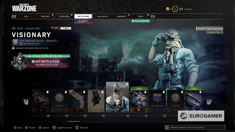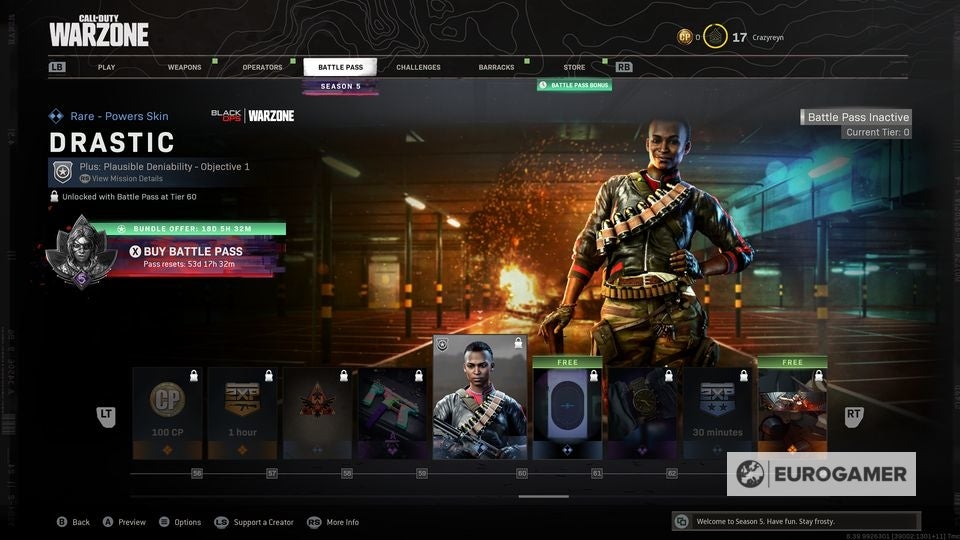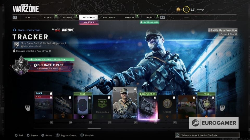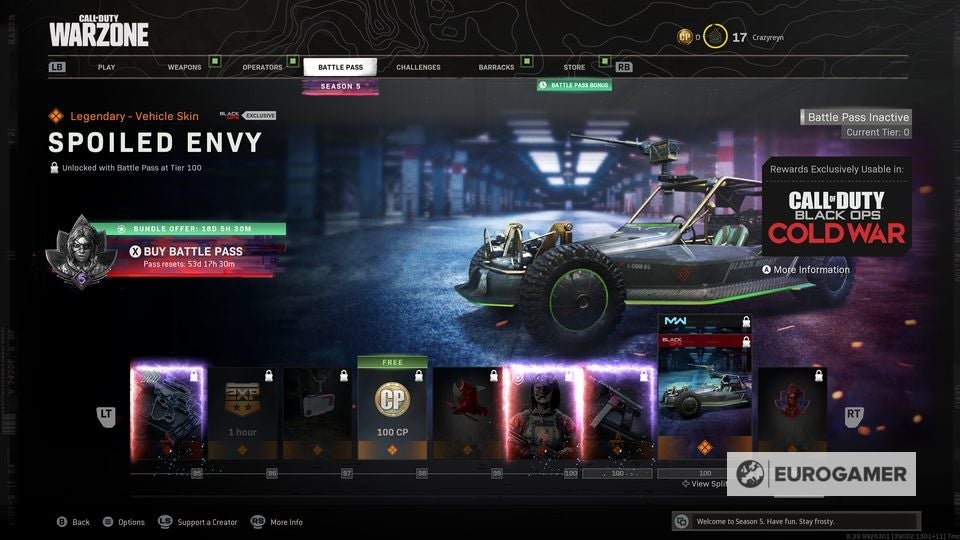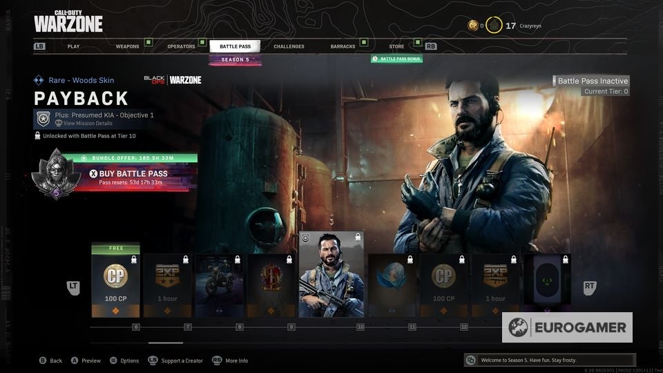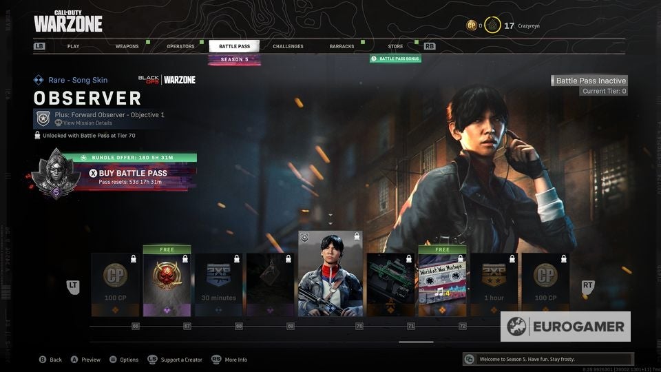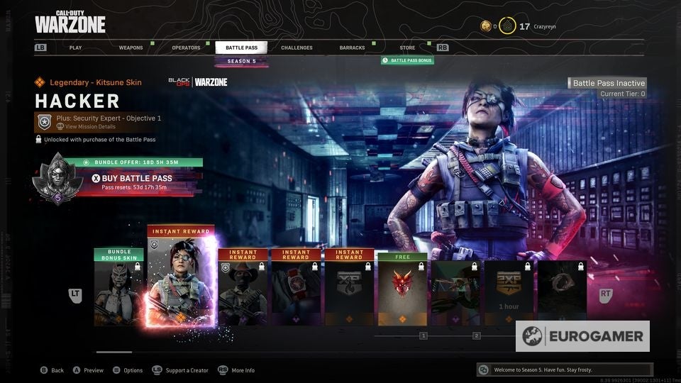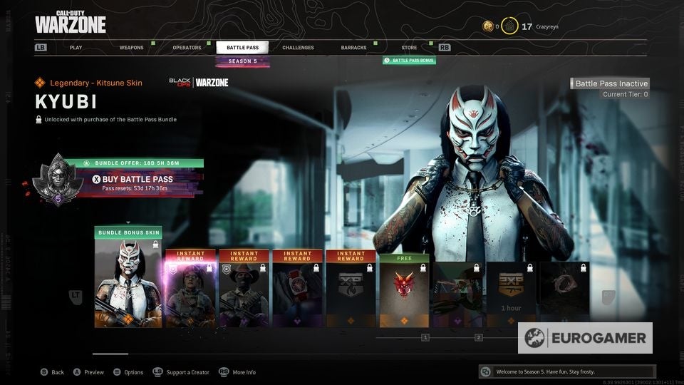 Black Ops - Cold War, Warzone Season 5 Battle Pass skins en Operators, waaronder Kitsune, Scuba Diver en Samurai Tier 100 beloningen