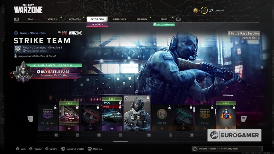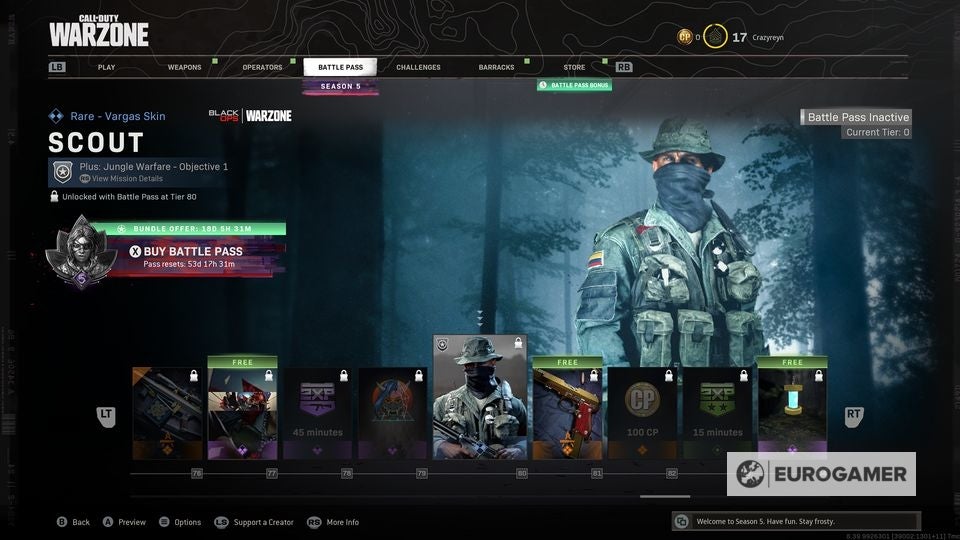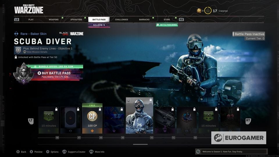 Hieronder vind je alle nieuwe skins en Operators voor de Season 5 Battle Pass - inclusief verschillende varianten voor Kitsune, waaronder op welk niveau ze vrijkomen. Onze favoriet is de toevoeging van Scuba Diver - en met elke 10 levels een nieuwe skin vrij te spelen, zijn er genoeg nieuwe skins om naartoe te werken.