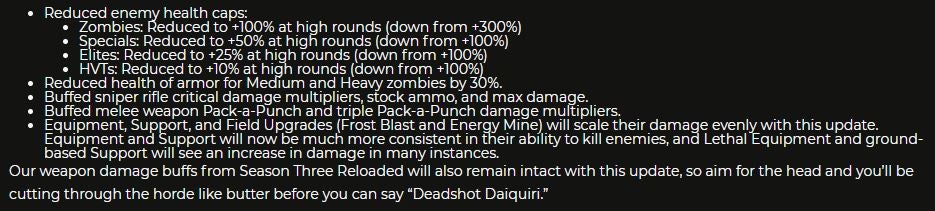 Naast de toevoeging van Mauer Der Toten gaat op 15 juli Black Ops Cold War Season Four Reloaded van start. Die mid-season update voegt de Dynamic Wall Buys-feature aan de Zombies-mode toe. Door die functie kunnen Wall Buy-weapons om de vijf ronden stijgen in rarity, dus van common naar legendary. Treyarch laat daarnaast weten dat de start van Season Four Reloaded zorgt voor deze onderstaande "fundamentele veranderingen".