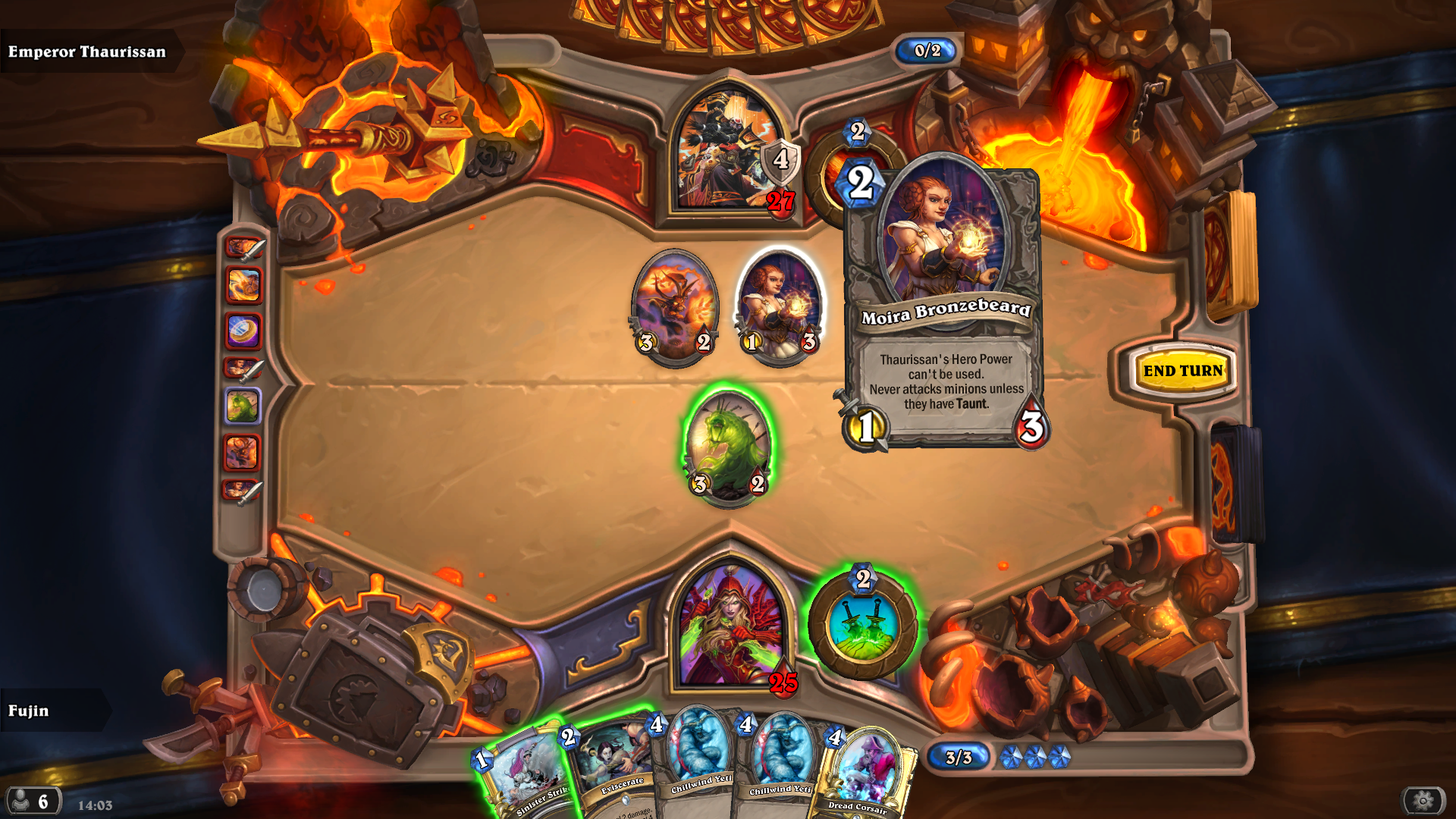 Daar ligt gelijk de kracht van deze uitbreiding. Iedere baas heeft een unieke kracht die je het leven zuur maakt. Zo heeft Emperor Thaurissan vanaf het begin zijn vrouwlief op het spelbord liggen. Moria Bronzebeard blokkeert Thaurissan's unieke kracht en dat is maar goed ook, aangezien hij je daarmee in één keer van het bord kan vegen. Aan jou dus de taak om haar in leven te houden.