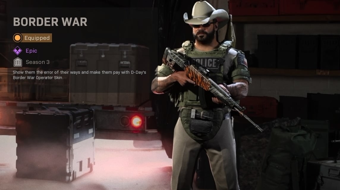 Het uiterlijk van de Border War skin is echter nog steeds hetzelfde. Op D-Day's borst staat nog steeds 'Police' geschreven en op zijn schouder prijkt de Texaanse vlag.