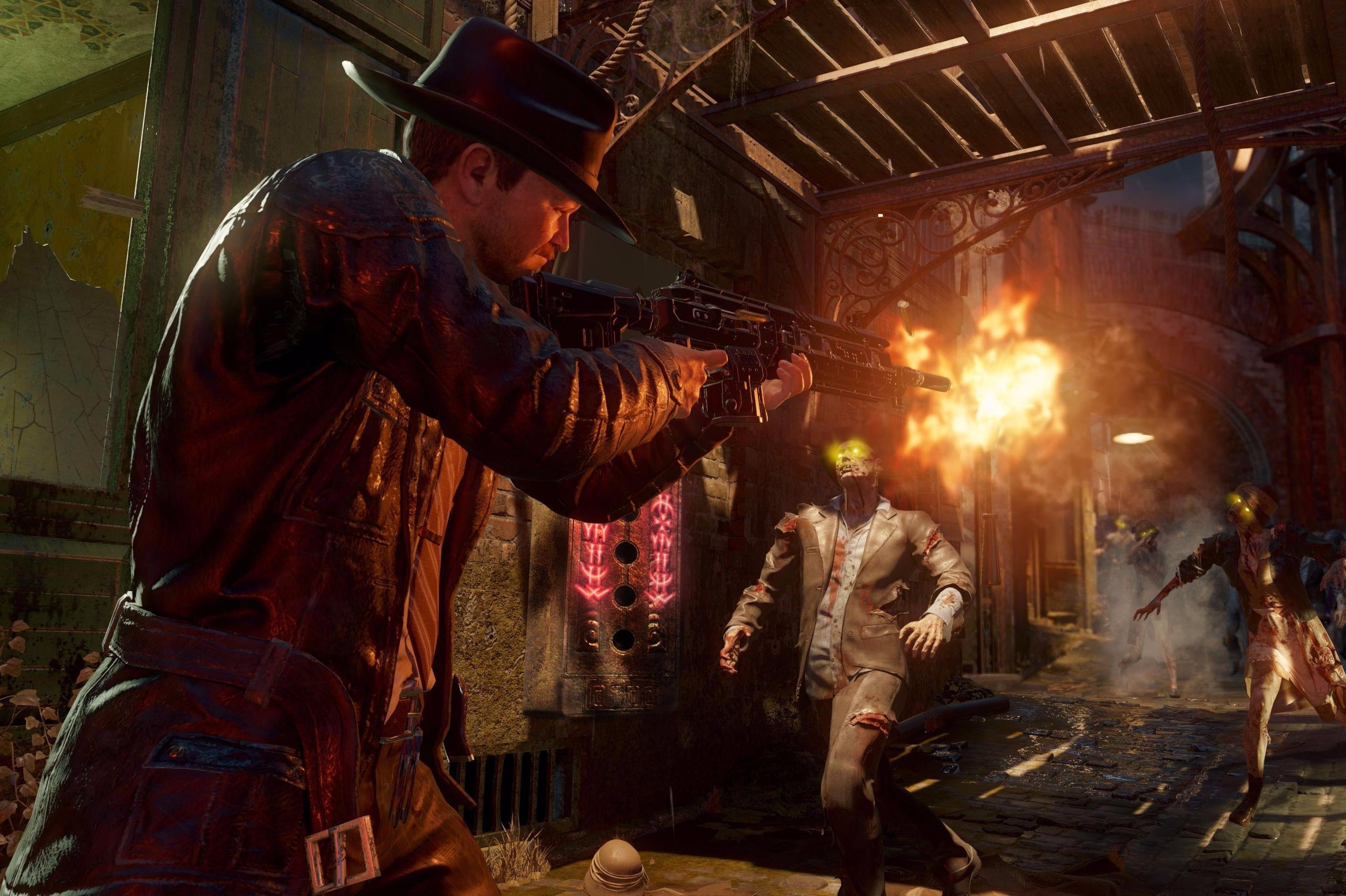 Treyarch introduceerde in Call of Duty: World at War in nazi-outfit gehesen ondoden, die je vervolgens samen met anderen aan gort moest schieten. Goed nieuws voor de liefhebbers van de populaire zombiemodus: die maakt in deze game wederom zijn opwachting. Onder de naam Shadows of Evil knal je weer horden ondoden af, deze keer in een jazzy noir-setting die doet denken aan de jaren '40. Je speelt als één van de vier personages - The Magician, The Femme-Fatale, The Cop en The Boxer - terwijl ze de mysterieuze Shadow Man onderzoeken. De personages worden vertolkt door acteurs Jeff Goldblum, Heather Graham, Neal McDonough, Ron Perlman en Robert Picardo. Er is een volwaardig progressiesysteem aanwezig.