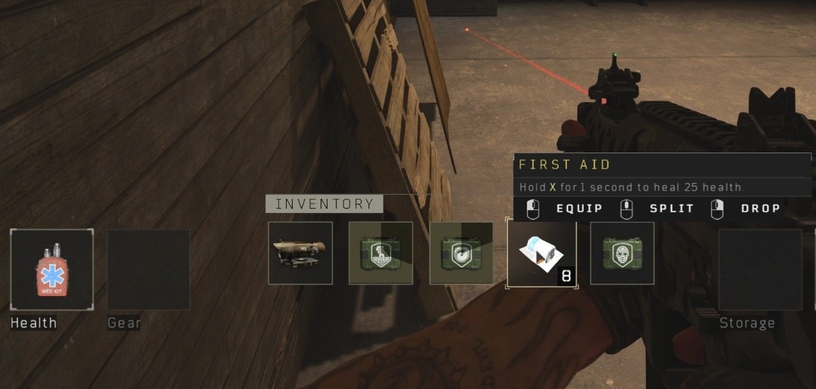 Je moet altijd je sterkste item healing equipped hebben. In een heftig vuurgevecht wil je altijd zoveel mogelijk HP kunnen bijtanken. De kans is echter klein dat je de tijd zal hebben om vier of vijf bandages te gebruiken. Ook zal je waarschijnlijk geen tijd hebben om in je inventory te gaan en kalm iets uit te kiezen.