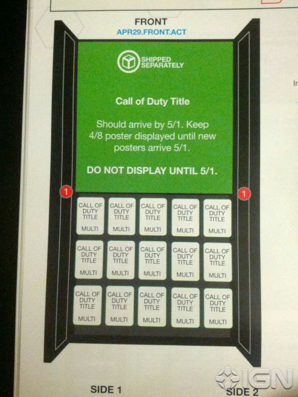 Dankzij een 'display blueprint' die aan winkelketen GameStop werd geleverd is de datum waarop de eerstvolgende editie van Activision's populaire shooter zal worden onthuld door het bedrijf zelf gekend. Woensdag zal de videogamegigant nieuw promotiemateriaal uitdelen aan verschillende verdelers. Dit zal waarschijnlijk gepaard gaan met een publieke aankondiging van Infinity Ward's opvolger voor Modern Warfare 3. Als dit het geval is, zal dit tevens gebeuren op dezelfde datum waarop Black Ops 2 aan het grote publiek werd voorgesteld. Dit gebeurde vorig jaar tijdens de NBA Playoffs. Eerdere anonieme bronnen spraken ook al over een onthulling op de eerder genoemde datum.