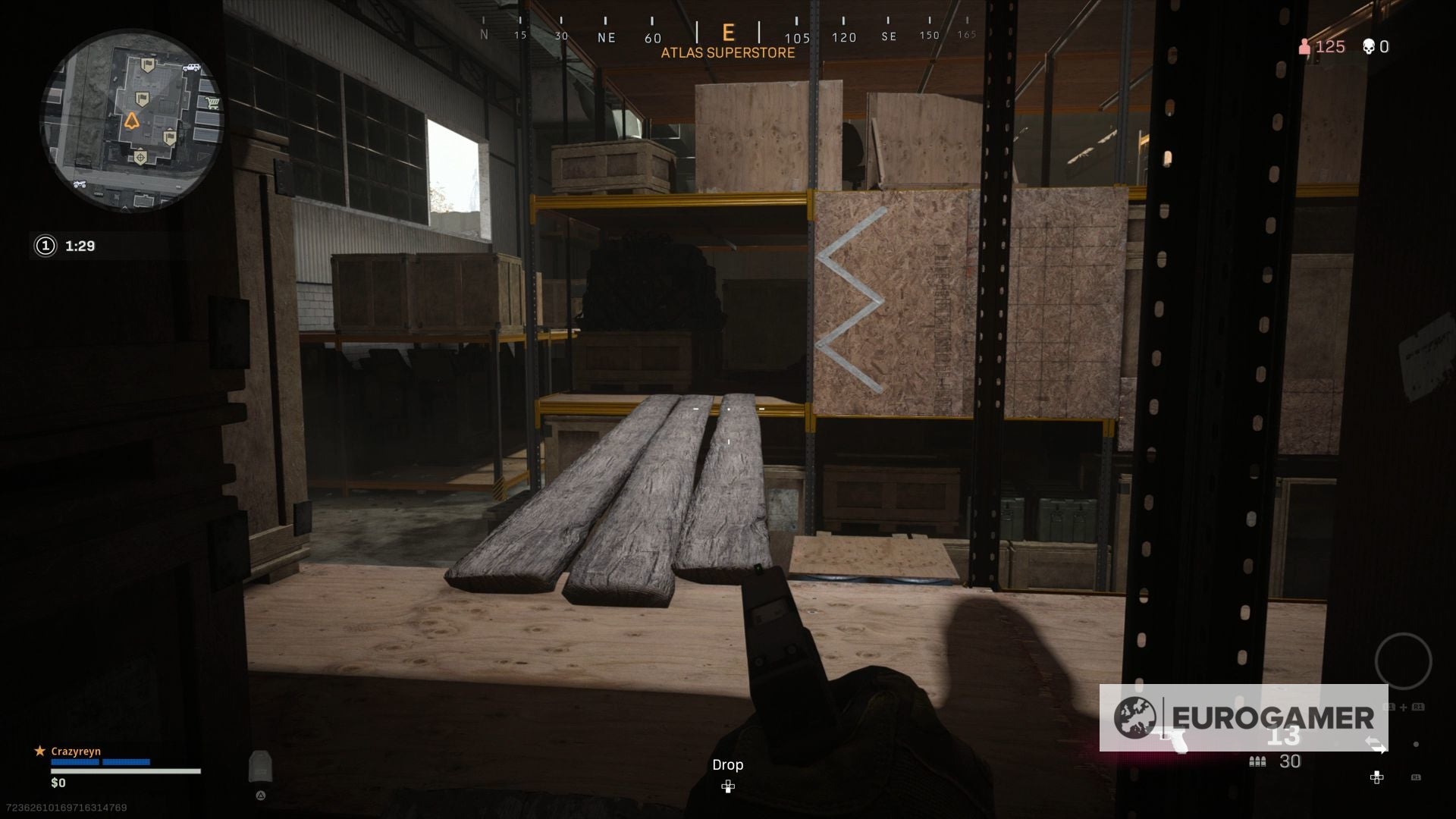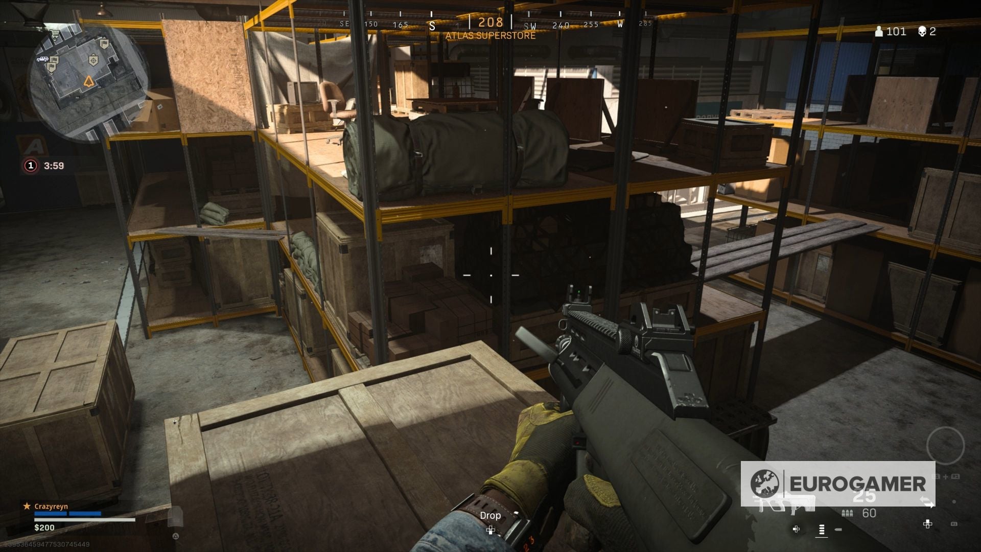 Ga vervolgens in het pakhuis, en klim naar het centrum van het level via de meest noordelijk gelegen stellage.