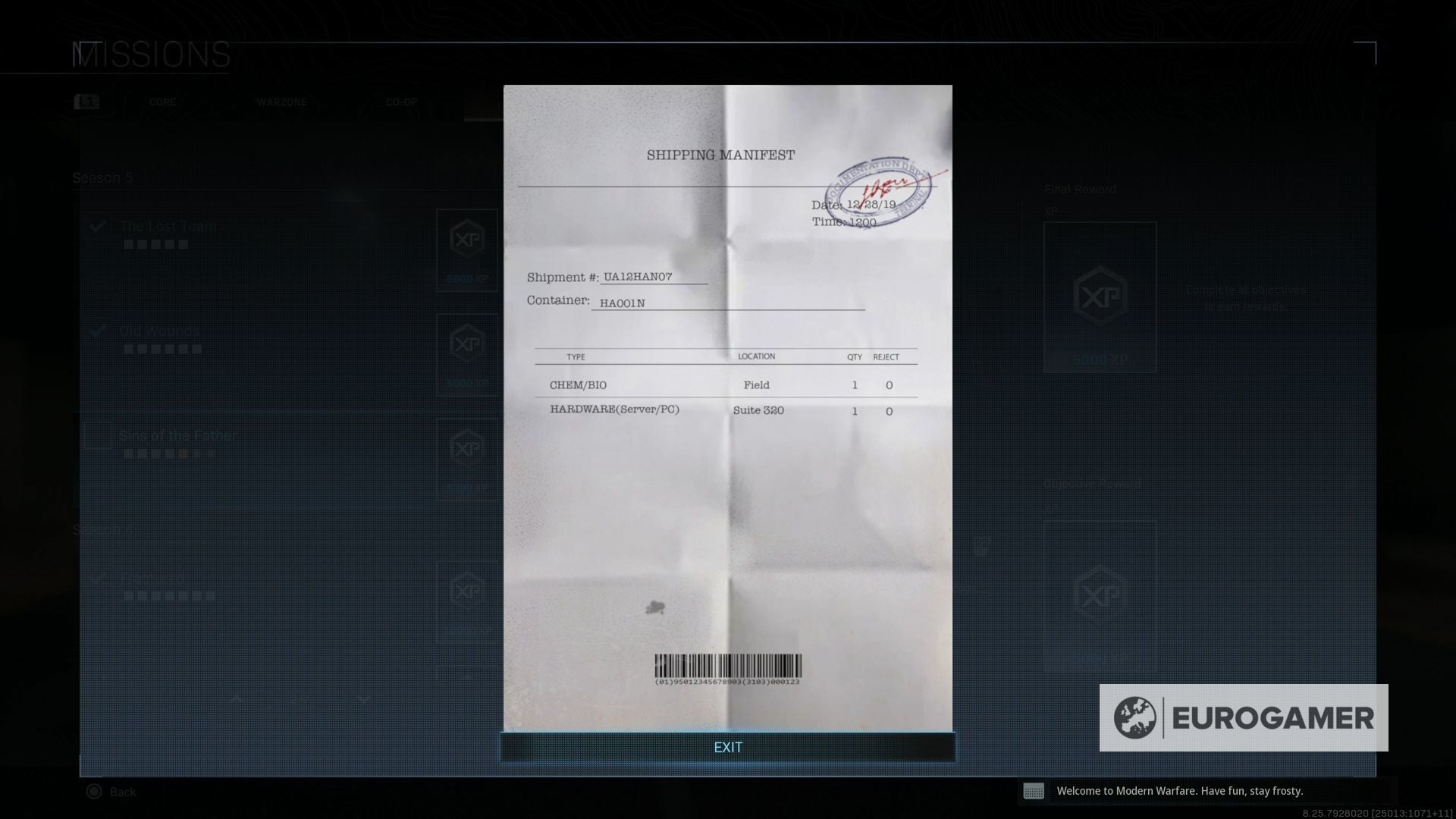 - Warzone Sins of the Father Intel location 5: Hardware werd bij Suite 320 afgeleverd - Toegang vereist een toegangscode