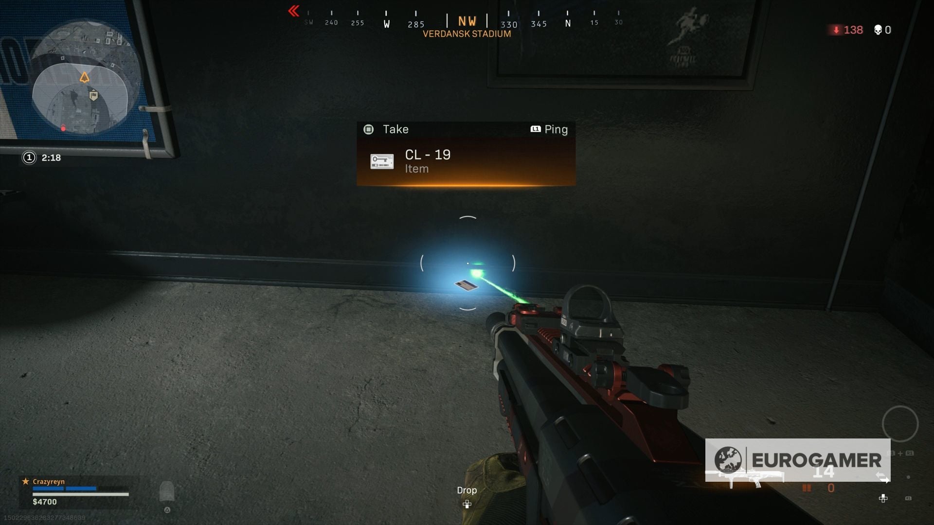 - Vind de drie keycards doorheen het stadion. Deze spawnen willekeurig en kunnen dus overal zijn.
