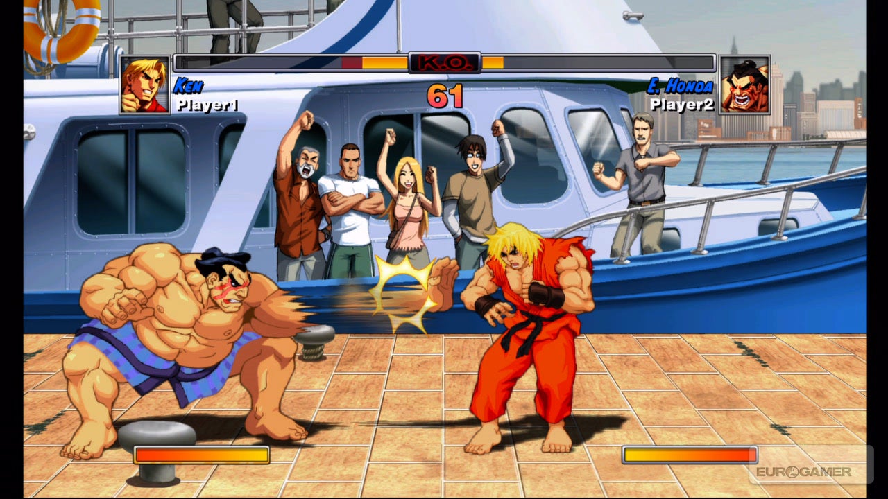 Beginnen doen we met Super Street Fighter II Turbo HD Remix. Nee die titel is geen grap, iemand dacht werkelijk dat het een goed idee was om de woorden 'super', 'turbo', 'HD' en 'remix' aan één titel te plakken. Is er iemand die nog behoefte heeft aan een toelichting van Street Fighter II? Ja, het blijft een klassieker, maar weet je wat? Ik ben het beu. Ten eerste hebben ze al zo schandalig veel versies van deze ene game gemaakt dat het gewoon niet meer grappig is. Ten tweede heeft deze Super Street Fighter II Turbo HD Remix (auw, m'n mond) niet echt een overvloed aan modes. En ten derde, waarom zou je hiermee je tijd verdoen als hedendaagse fighting games tegenwoordig exploderen in populariteit: Super Street Fighter IV, Mortal Kombat, Soul Calibur V, BlazBlue: Continuum Shift Extend, Ultimate Marvel Versus Capcom en nu zelfs Street Fighter x Tekken. Een puntje voor het optioneel toepassen van Turbo en Remix aanpassingen en een puntje voor nostalgie, maar dat neemt niet weg dat de game zijn gloriedagen al lang voorbij is.