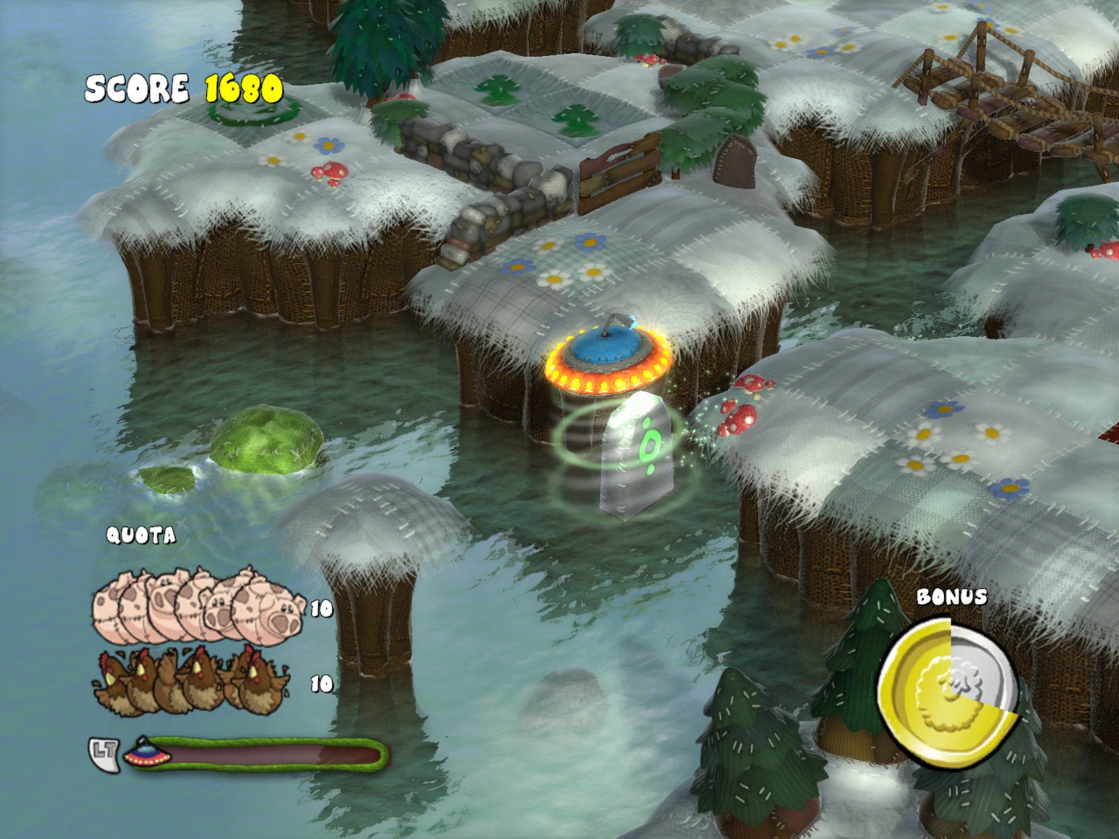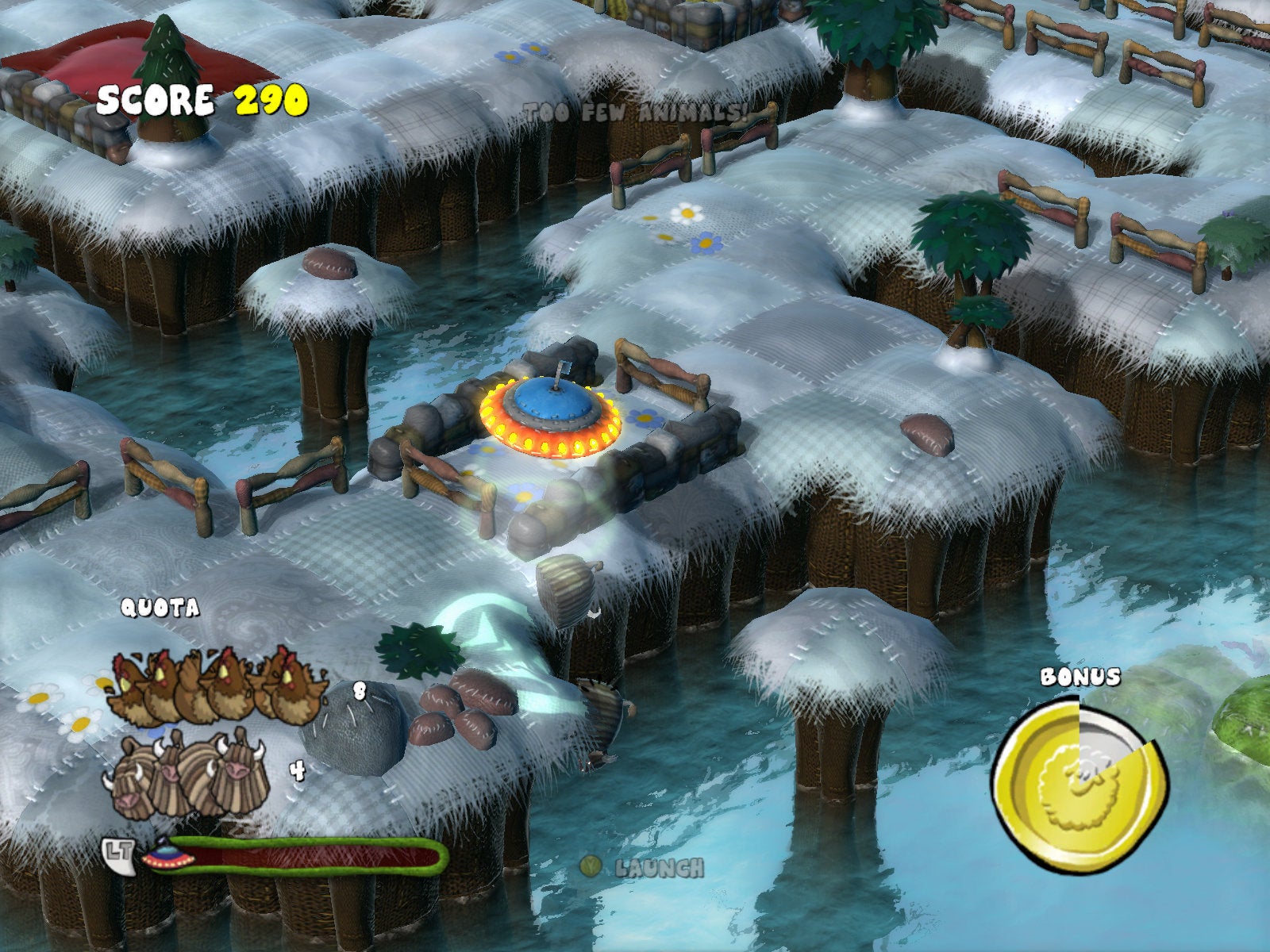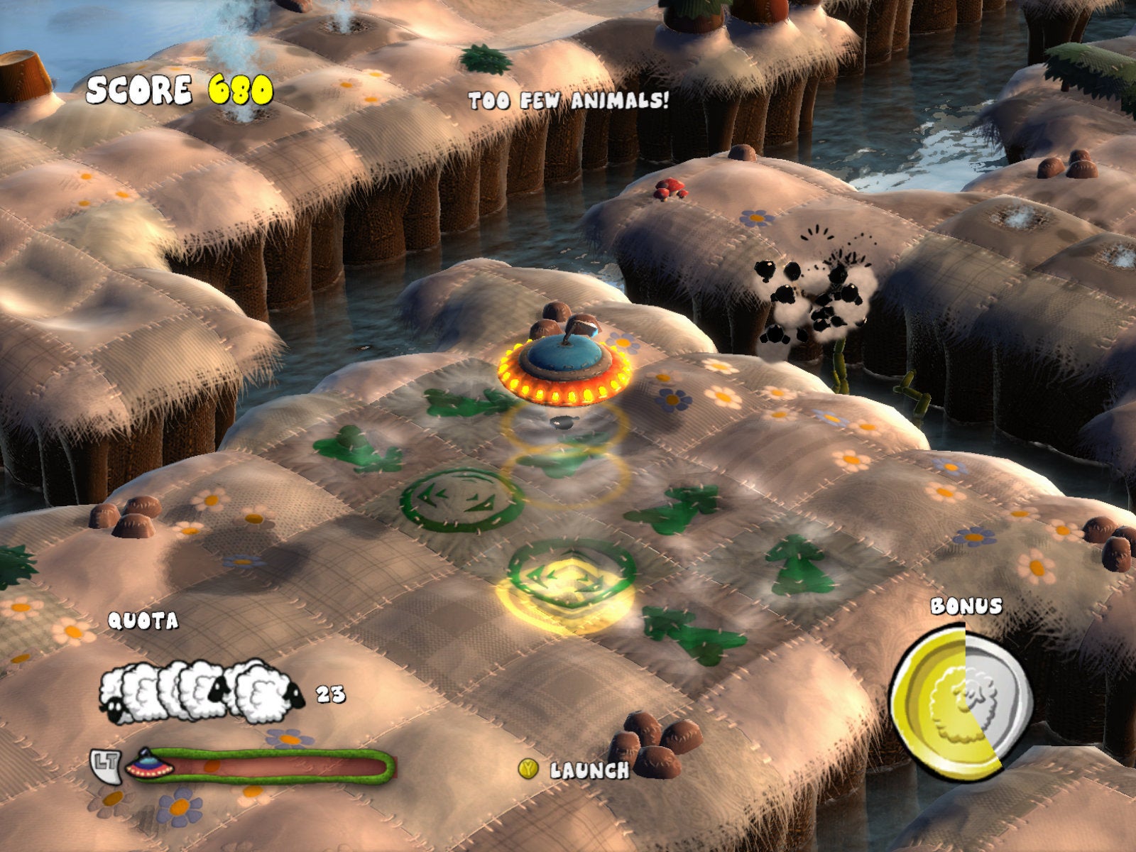 Dan is er nog Flock!, voor de grapjassen onder jullie: er staat effectief een L na die F. Flock! is een kleurvolle puzzelgame over aliens die zich bezighouden met het ontvoeren van boerderijdieren. Waarom? Dat mag je er zelf bij verzinnen (maar hou het PG-13 alsjeblieft). Ondanks een origineel concept en een amusante stijl, wordt de game geplaagd door enkele technische mankementjes. De game kiest voor een isometrisch 3D perspectief, wat in combinatie met de soms onwennige besturing van de UFO om wat oefening vraagt. Onder de dieren zitten ook altijd enkele koppige ezels (figuurlijk dan) wiens gedrag altijd lijkt af te wijken van de groep. Aangezien elk van de vijftig stages een race tegen de klok is, kunnen die zaken wel eens voor frustratie zorgen.