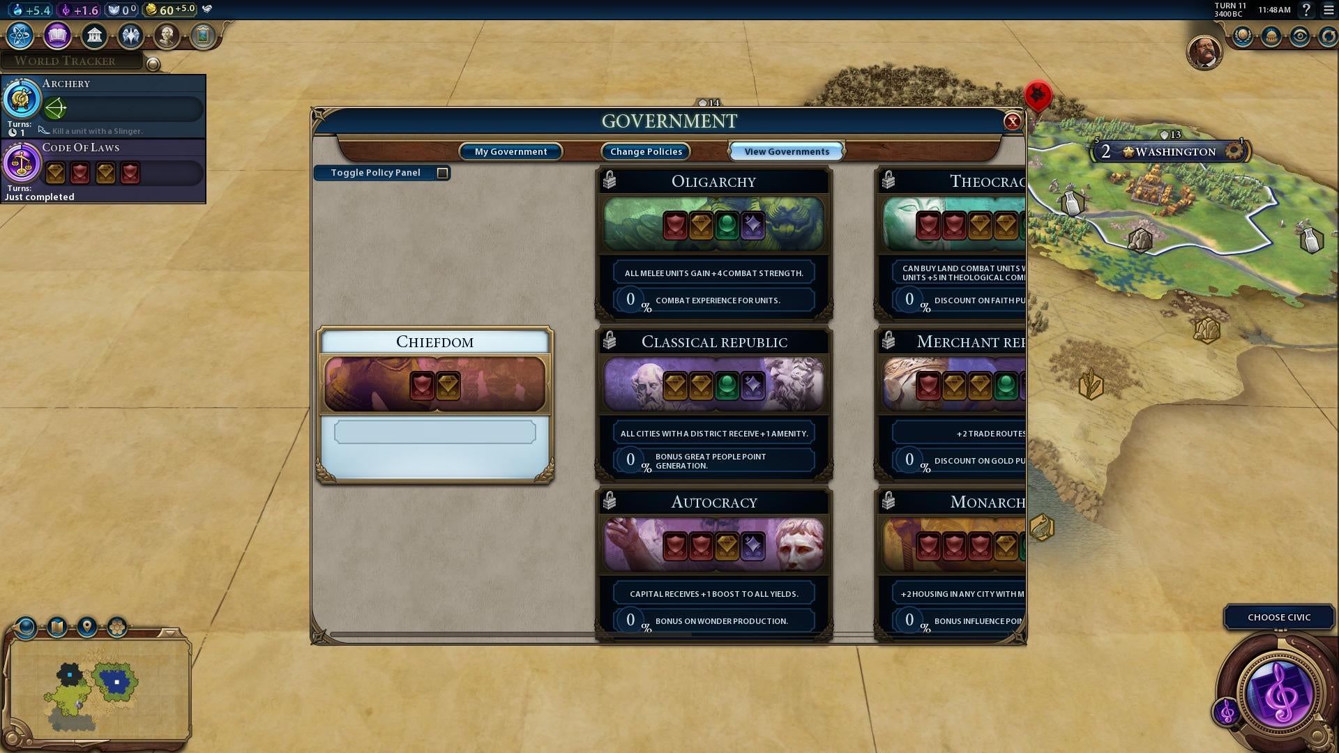 De nieuwe 'Civic tree' levert je 'Policy'-kaarten op die je gebruikt om je eigen staatsinrichting te ontwerpen. Combineer bijvoorbeeld een monarchie met een charismatisch leider, professioneel leger en humanisme om jezelf een verlicht despoot te wanen. Je eigen droomstaat besturen wordt zo dynamischer dan in de vorige Civilization-games.