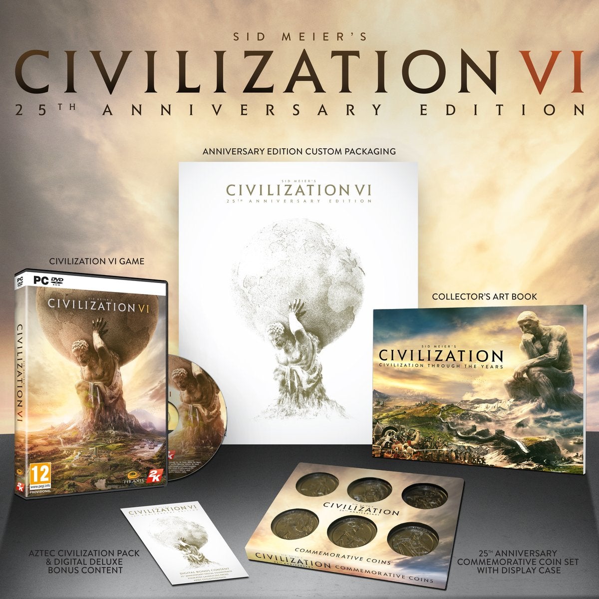 Zoals je in het begin van dit artikel al las, gaan de Civilization-games al een tijdje mee. 25 jaar om precies te zijn. Om die verjaardag te vieren is de Civilization 6 25th Anniversary Edition beschikbaar. Die collector's edition bevat: