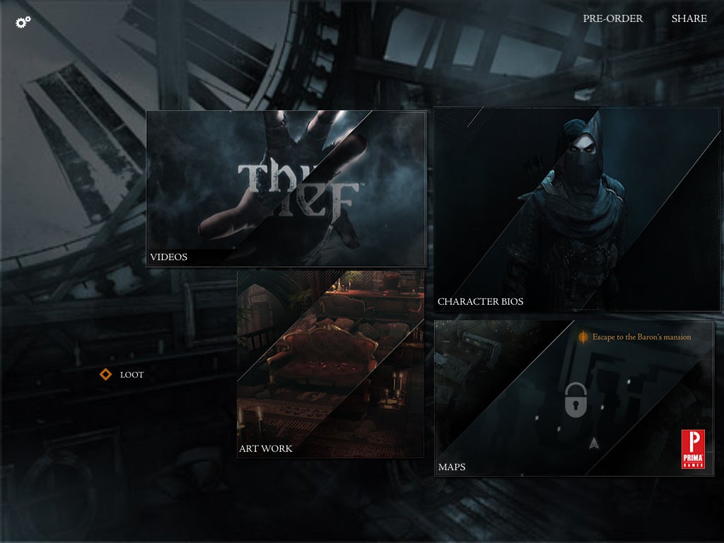 Hierin kun je bijvoorbeeld in-game statistieken en gestolen voorwerpen bijhouden, de interactieve kaarten gebruiken van Prima Games of de Wiki-encyclopedie lezen van IGN. Ook kun je er de eerste twee uitgaves van de digitale Thief comics op lezen dankzij een samenwerking met Dark Horse Comics.