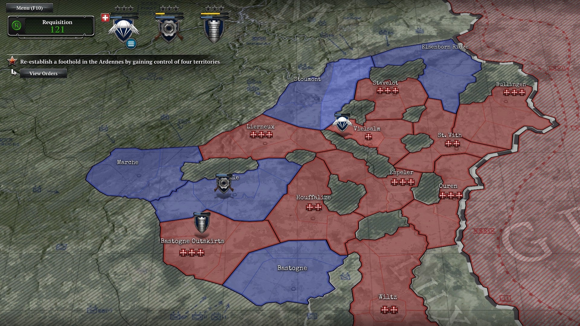 Je eigen versie van de Slag om de Ardennen is deels door willekeur bepaald. De landkaart is onverdeeld in zestien gevechten. Elf missies zijn elke keer dezelfde, de rest zijn mappen met willekeurige doelen. De doelen van de missies liggen wel vast, maar de samenstelling van de vijandelijke troepenmacht varieert naargelang hun krachtniveau. Dit niveau stijgt wanneer een verslagen leger zich vanuit een nabijgelegen gebied terugtrekt en met hun broeders samenvoegt. Verdrijf de vijand uit Houffalize en plots verschijnt er in Lierneux een Panzer op het strijdtoneel. Tenzij je natuurlijk de pas van de vluchtende legers afsluit.