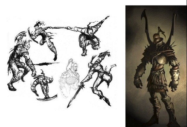 Concept art toont vroege vorm Kratos