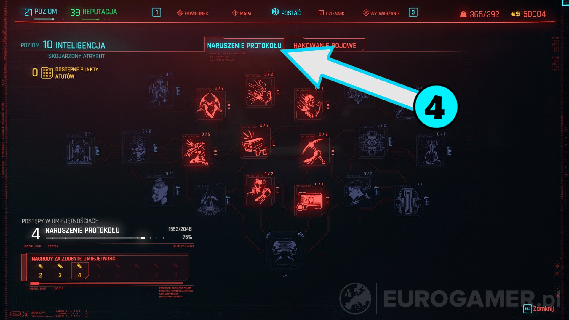 Zelfs een personage dat nog niet ontwikkeld is als hacker krijgt al een voorproefje van een aantal geweldige Daemons. Maar om er meer te krijgen, of effectievere Daemons te hebben, moet je Perk Points investeren in de perks die je kan vinden in het Breach Protocol (4) tabblad van de Intelligence attribute.